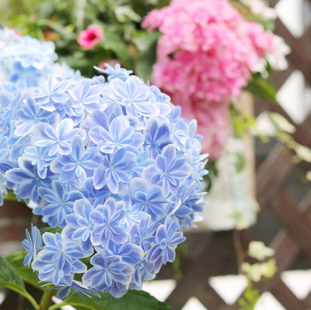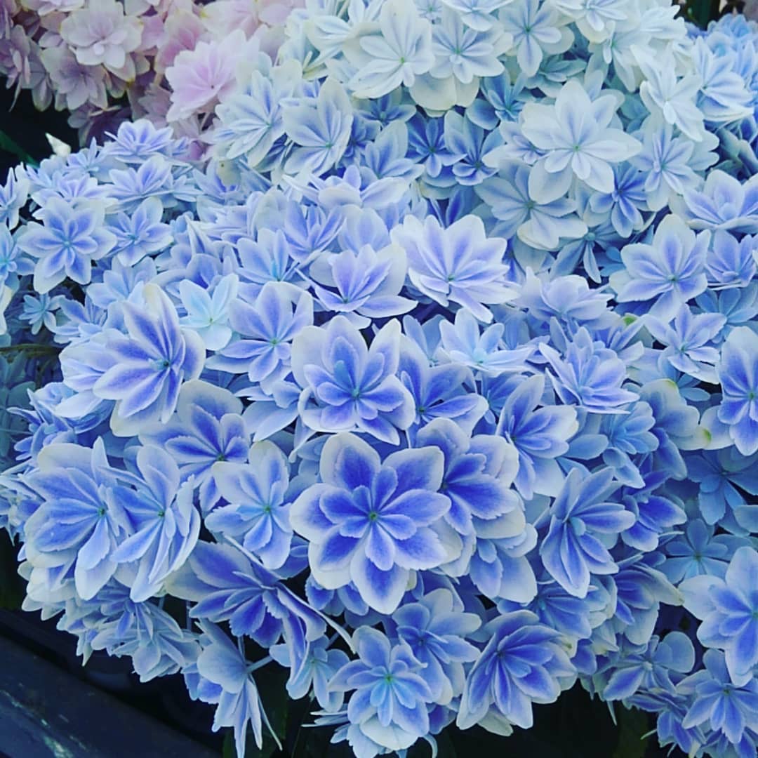 ▼萬華鏡除了最常見的紫藍色調,還有顏色更加淺淡的冰晶藍、霧面柔光粉色系,看起來非常清新。跟單色紫陽花相比,萬華鏡的顏色、型態都更加細膩迷人。
