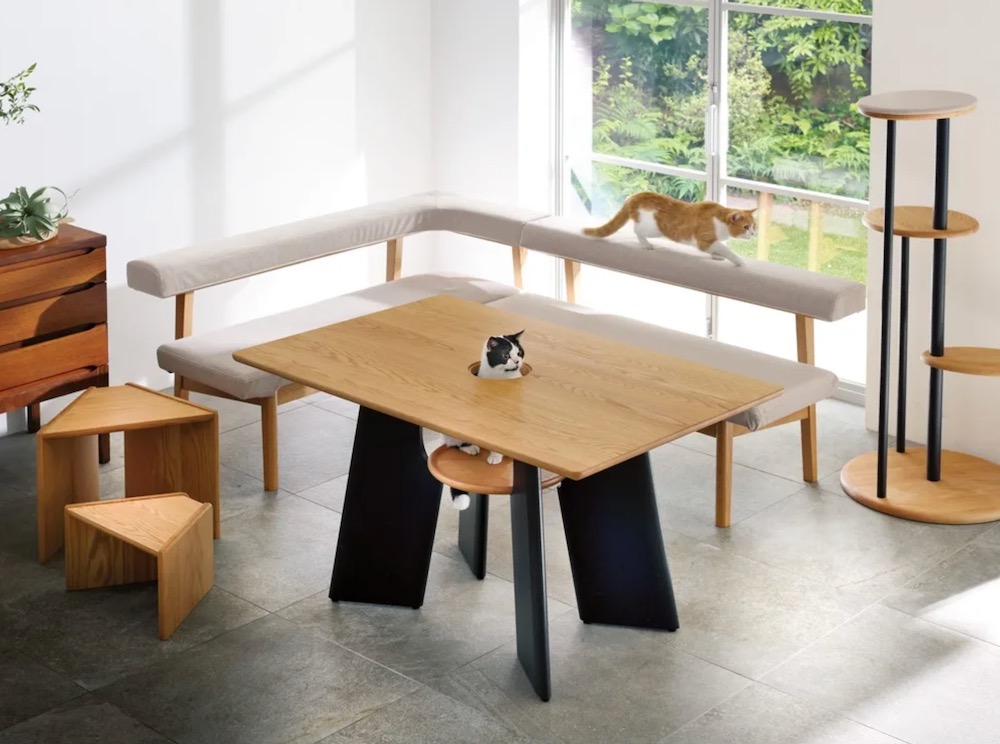 這款「人貓共用桌」是實心橡木材質的,整體看起來簡約時尚。目前官網的售價為159,500日圓(約台幣4萬元)。鏟屎官們可以考慮一下,將這款桌子買回家,跟貓主子一起享受休閒的時光~