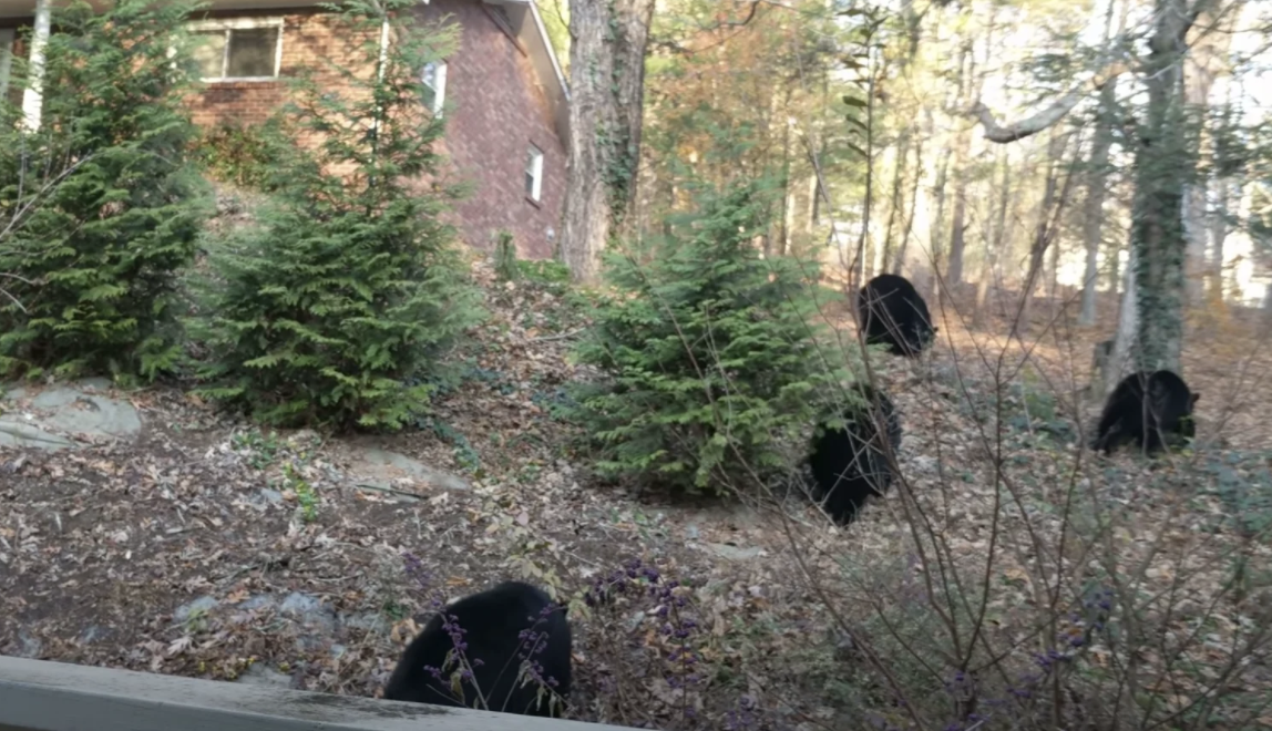 ▼Patrick家附近有大片山林,當地經常有熊出沒。通常人們都會跟熊保持距離,但Patrick卻跟熊成為了好朋友。2017年的夏末,一隻熊媽媽帶著3隻小熊出現在他家後院,因為黑熊一家沒有搞破壞,也沒有出現攻擊舉動,所以Patrick沒有理會牠們。