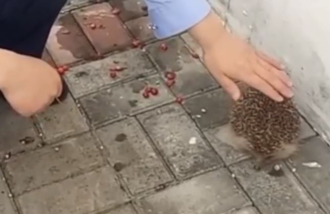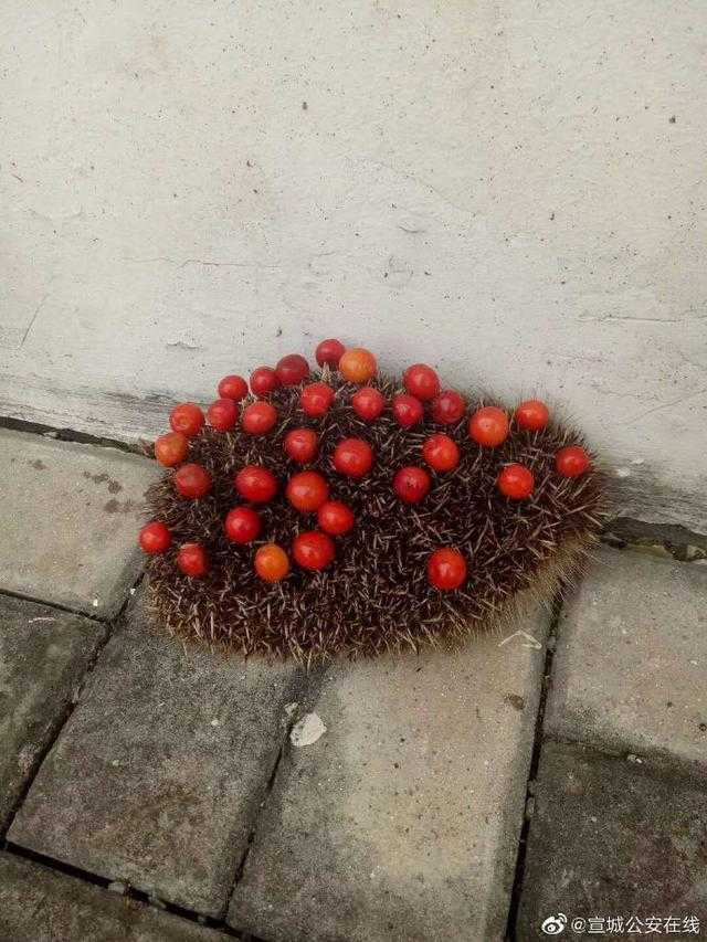 ▼民警們本來是給小刺蝟打包櫻桃,牠卻不領情,臨走的時候抖了一下,把背上的32顆櫻桃全都抖掉才慢慢離開,這一幕讓人哭笑不得。