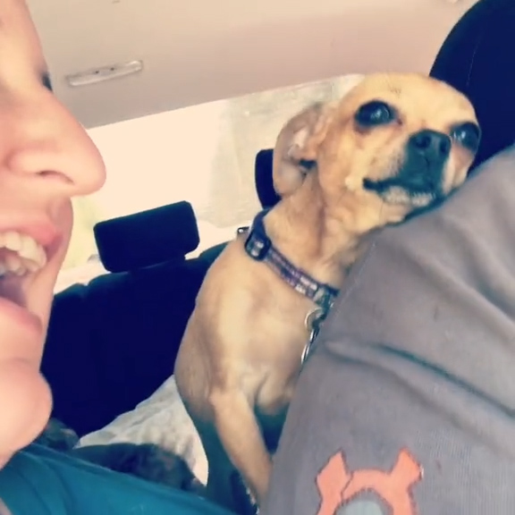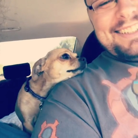 @alicialuvlee12 Our dog loves my husband #chuahuahua #dogslife #carride #5poundsoflove
