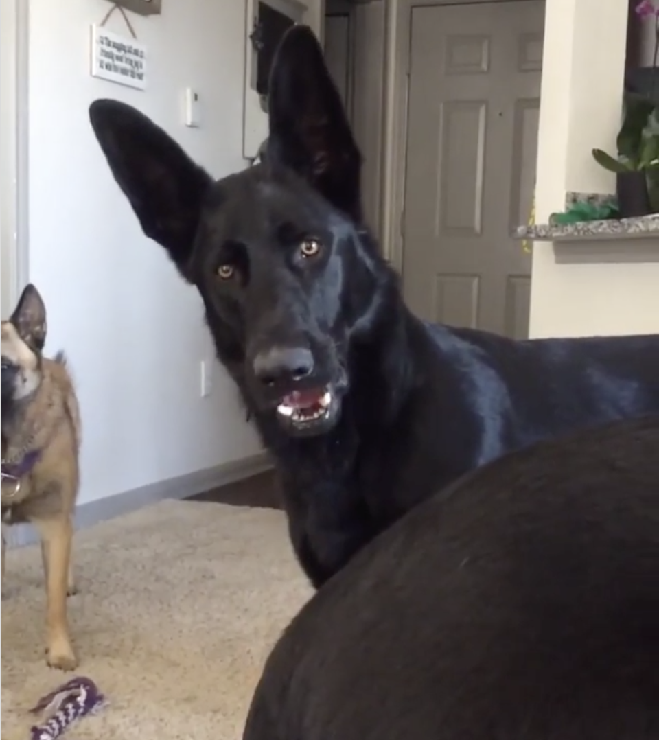 傻眼汪汪!黑德牧叼球球「聽小孩哭聲」嚇到掉下來 網笑翻:旁邊那隻也定格是怎樣~