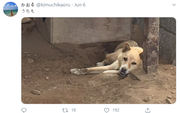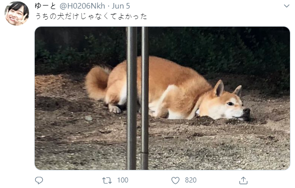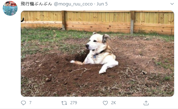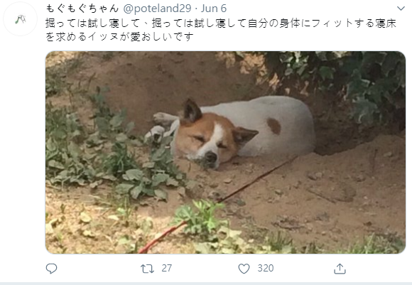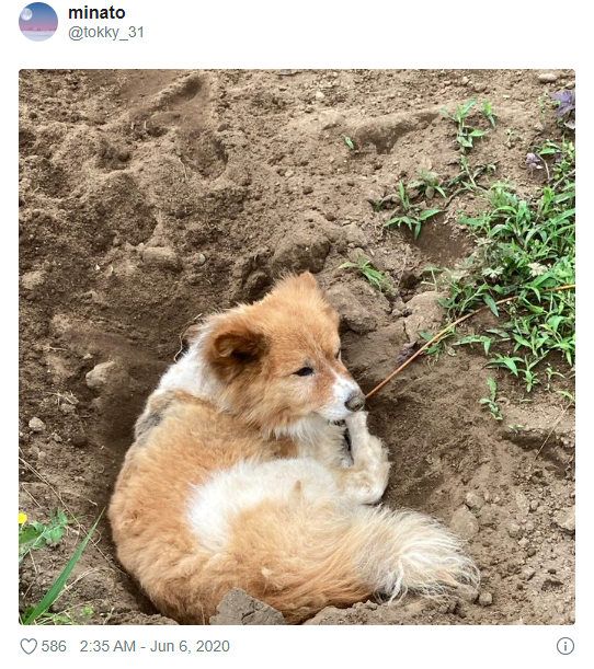 これは庭のすみっこに盛大に穴を掘って「ここが落ち着くんです」と言いたげなイッヌ pic.twitter.com/45LRsVf8Kw