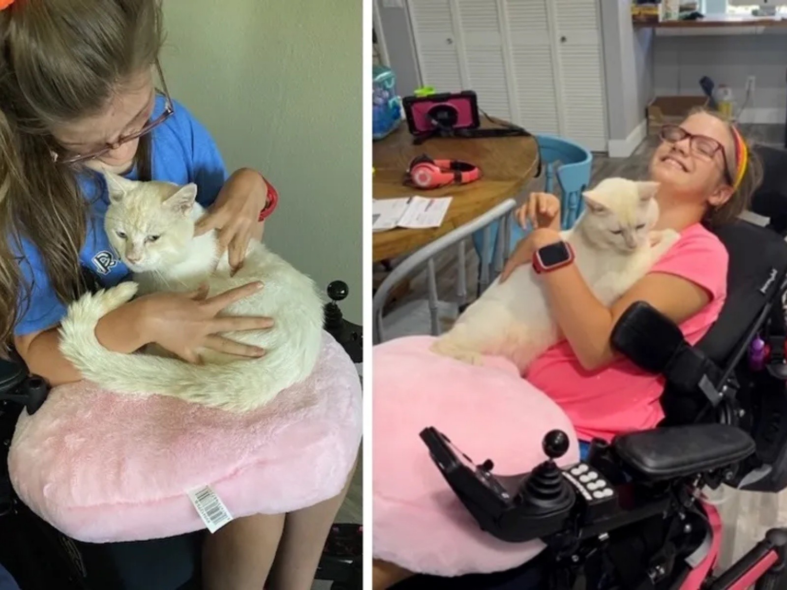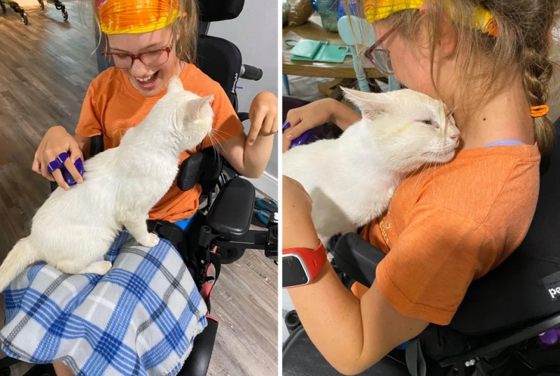 ▼動保組織幫辛納屈找到了一個合適的新主人-Kelly。Kelly一直想養貓,但她平時要靠電動輪椅出行,貓咪都害怕輪椅發出的聲音,所以她一直沒找到合適的貓咪。
