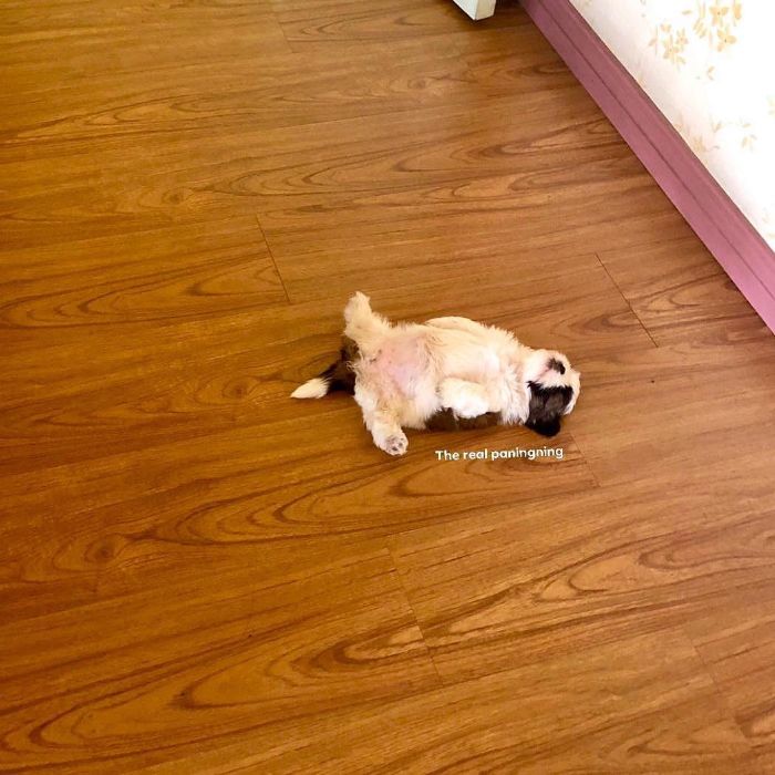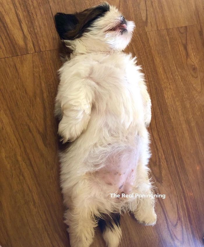 不知情的人看到真的會想很多啊!幸好這只是牠獨特的睡姿而已~你家的狗狗也會這樣睡嗎?還是有比Paningning更誇張的睡姿呢?