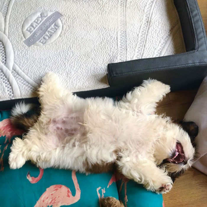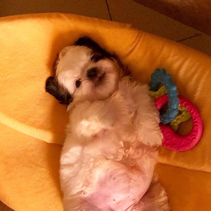2021年09月13日汪星人就是呆萌~國外一隻超可愛的西施犬「Paningning」最近獲得許多媒體報導,原因就是牠睡姿「放很開」,主人Janess Cua拍下照片後,許多網友的心都被牠偷走,每次心情不好的時候看一看都會笑出來~