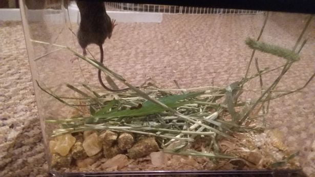 ▼Colin發現那隻小老鼠少了一隻耳朵,他猜測這可能是小老鼠自我治療的方式。於是他準備了一個飼養箱當作勒戒所,讓小老鼠在裡面休息一下,等牠睡醒就要開始戒毒了。