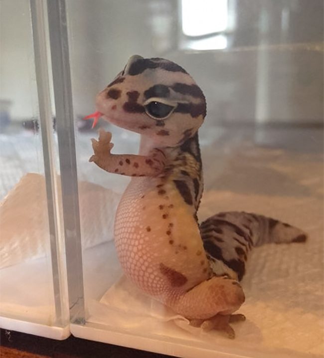 ▼這隻小守宮好酷,不僅吐舌頭,還會壁咚呢。