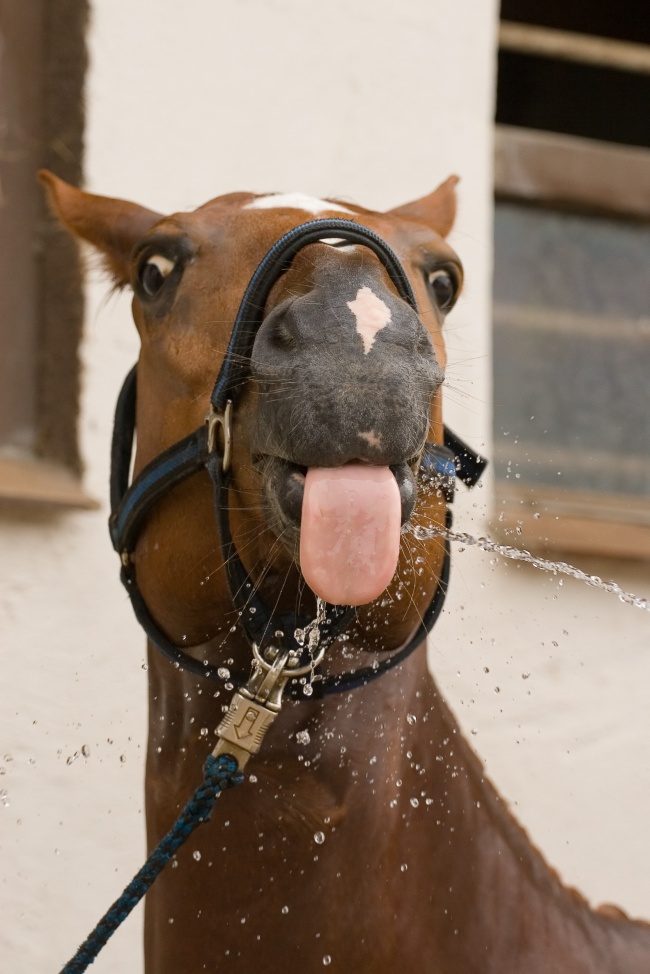 ▼這隻馬兒很調皮,喝水的樣子太有趣了。