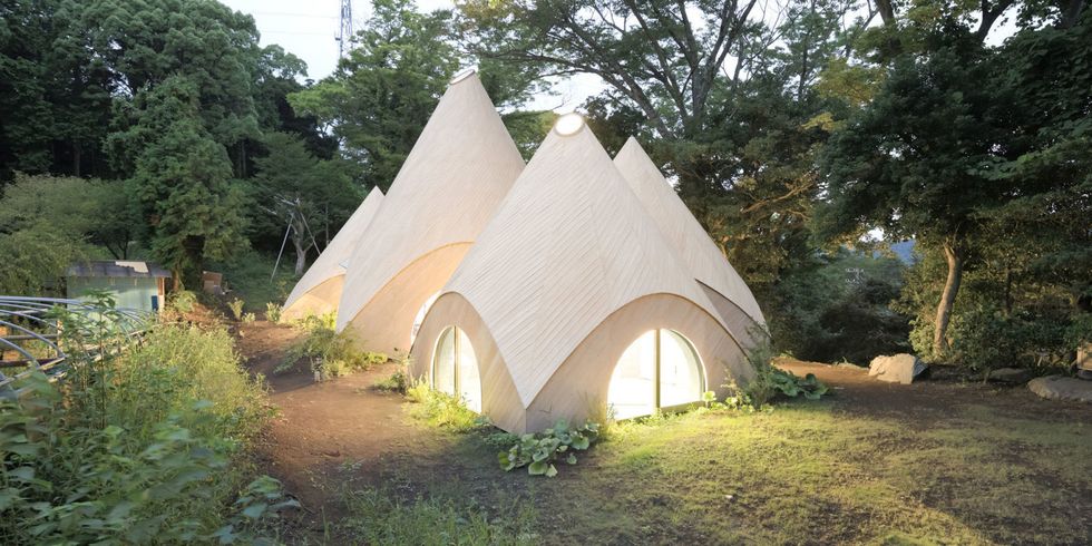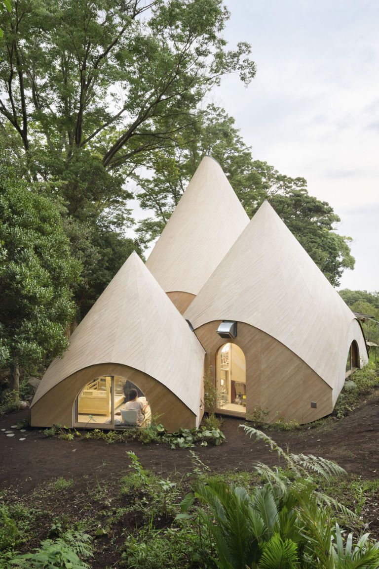 2021年09月18日日本靜岡縣的靜謐森林裡,有5座造型可愛、大小不一、連結在一起的木質小屋。小屋是錐形的,就像童話故事中精靈的住宅。這是建築師Issei Suma為2位60多歲的女性年長者設計的複合式退休住宅,取名為「Jikka」。小屋不僅外觀亮眼,內部也功能齊全,住起來很舒服~