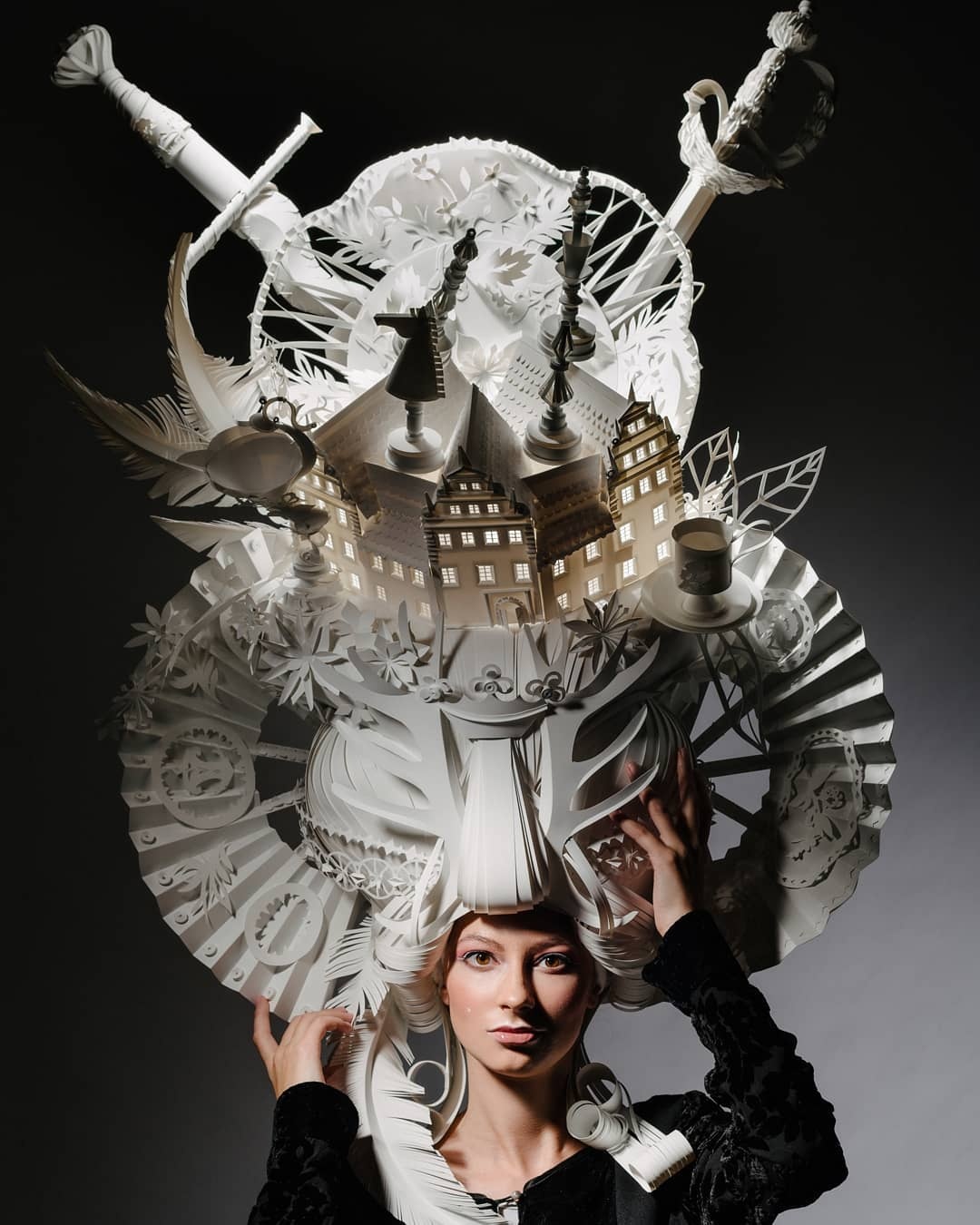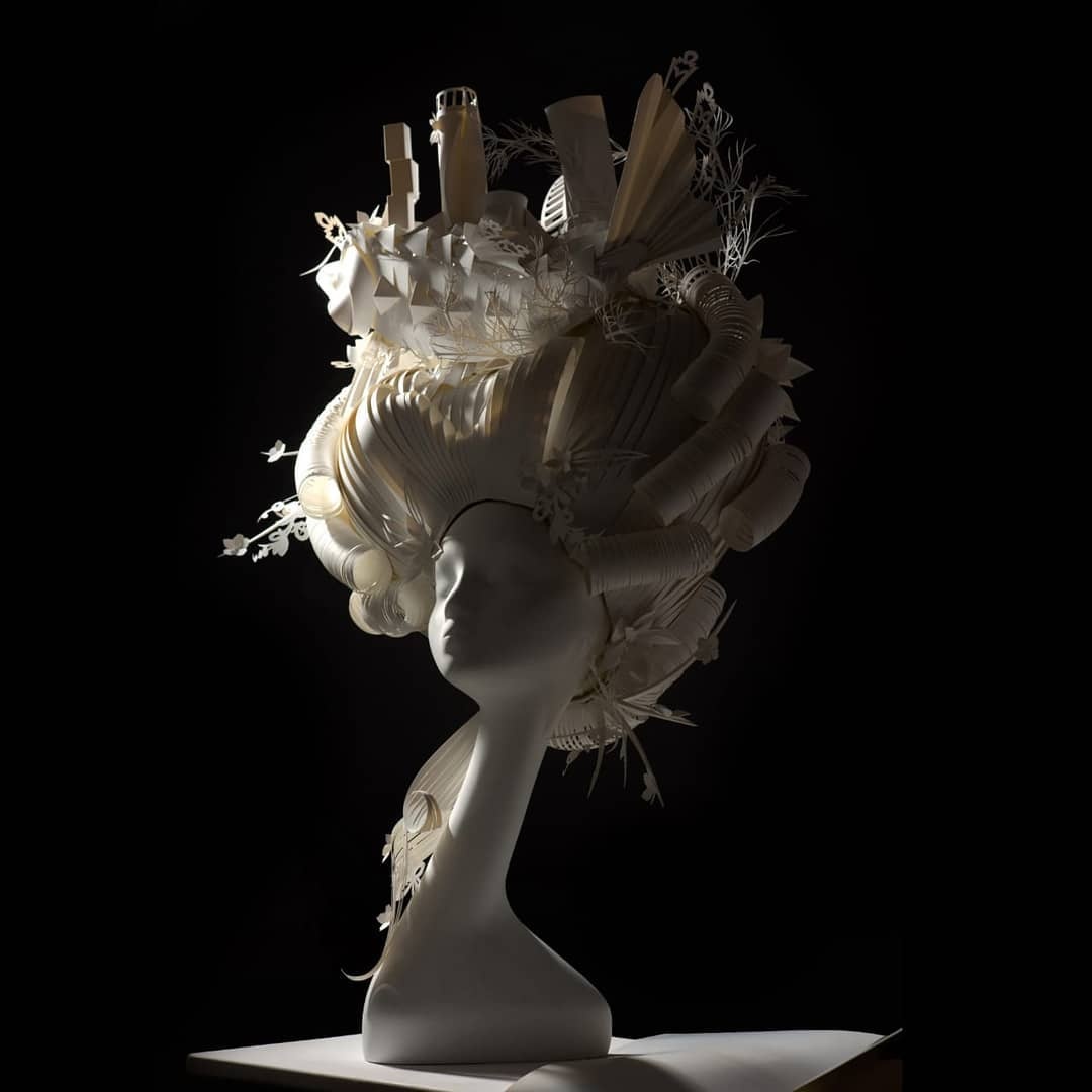 整棟房子戴頭上! 她超愛剪白紙變「立體紙藝家」 連「整套婚紗」都能做:穿上身美呆