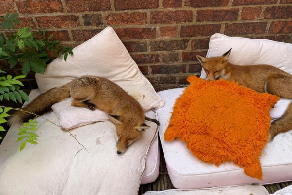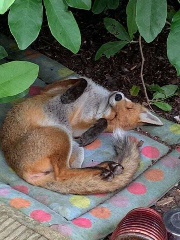 野生狐狸擅闖後院 躺太爽「還揪朋友來玩」:妳家就是我家!