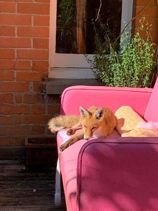 ▼Emma覺得小狐狸很可愛,就給牠取名為Foxy。Foxy很快適應了新環境,牠好像早就住在這裡一樣,會在後院的沙發上打盹曬太陽,還跟Emma的寵物貓Purcy成為了朋友。