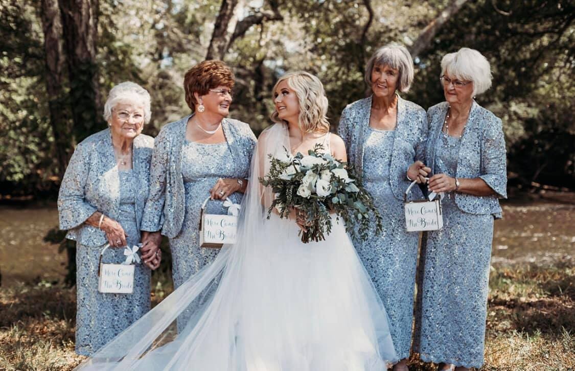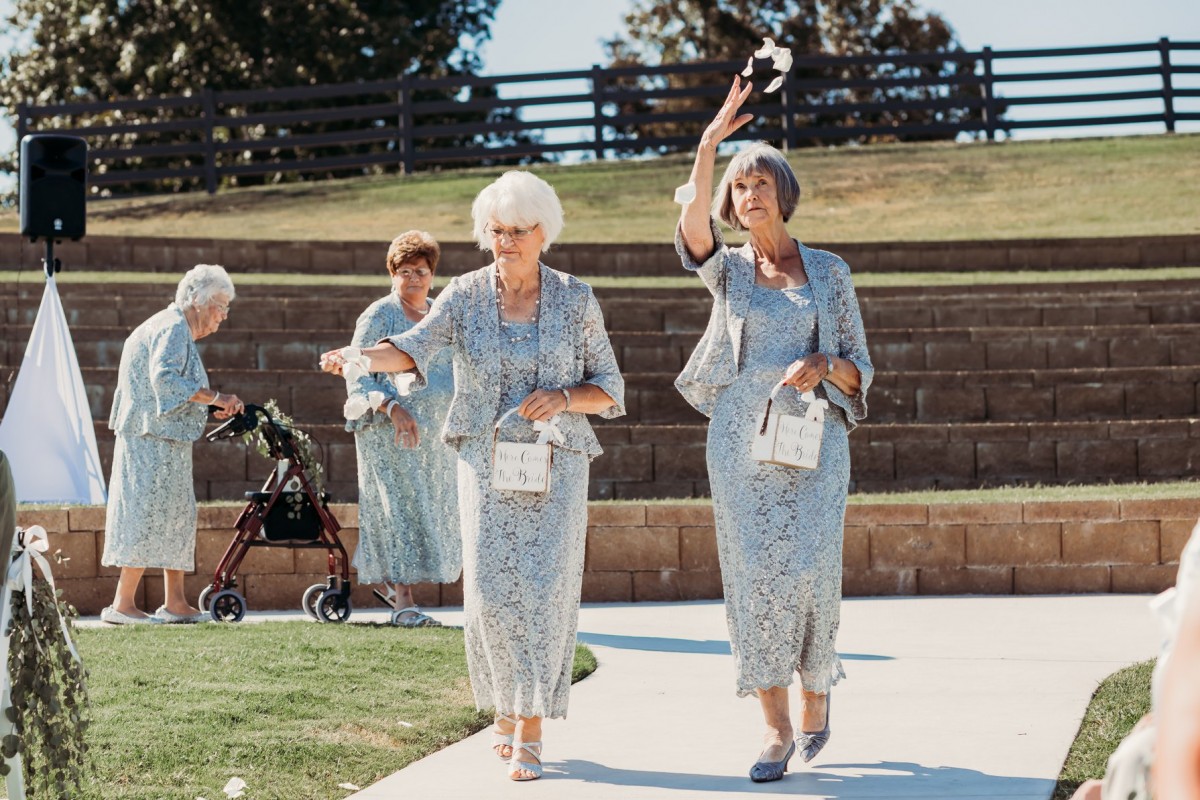 2023年06月22日一場浪漫的婚禮,怎麼能少了可愛的小花童呢?一般婚禮上的花童都會請萌萌的小朋友來擔任,但Lyndsey Raby和Tanner Raby卻做了一個特別的決定。這對新人請4位平均年齡77歲高齡的祖母擔任花童,給現場的賓客留下了珍貴的記憶~