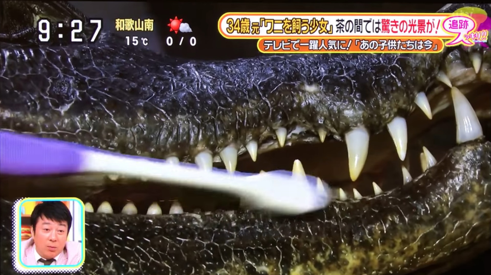 ▼38年前,村林信光在寵物店花5萬日圓買下一隻小鱷魚。當時小鱷魚只有手掌大小,看起來非常可愛。他將鱷魚放在自己開的咖啡店裡養,還特別向官方申請了飼養許可。他的兒女小小年紀就跟鱷魚一起生活,有不少媒體前來採訪。