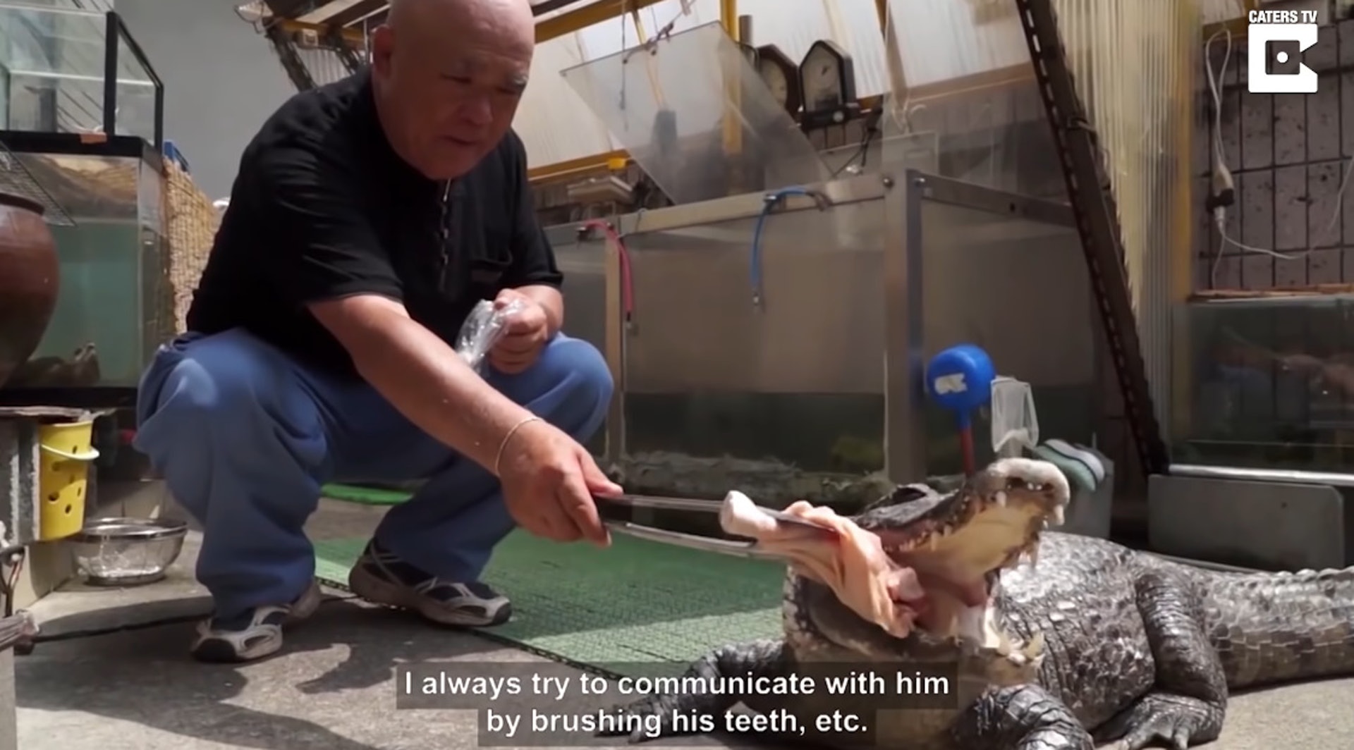 村林信光跟鱷魚相伴38年,對他來說,這隻鱷魚跟其他飼主家的狗狗、貓咪沒有兩樣,都是很重要的家人和朋友。只要付出感情,不管多獨特的動物也能跟人類建立聯繫啊~