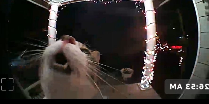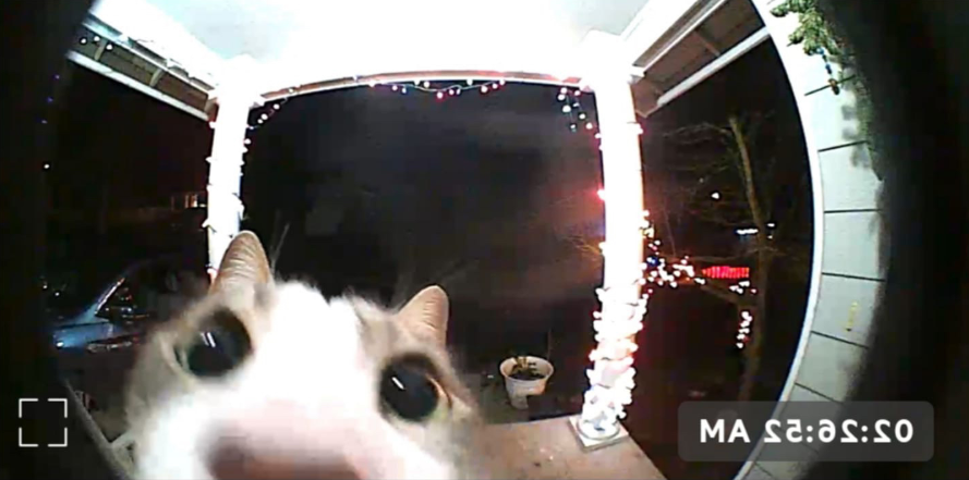 ▼日前一位網友在Reddit上分享了2張照片,只見一隻貪玩的貓咪在外玩過頭,直到凌晨2點半玩夠了才回家。當時家人已經鎖上大門休息,牠無法進屋,於是按門鈴求救。主人被門鈴聲吵醒,到門口查看監視器時,才發現貓咪正在狂按門鈴,還對著鏡頭喵喵叫個不停。