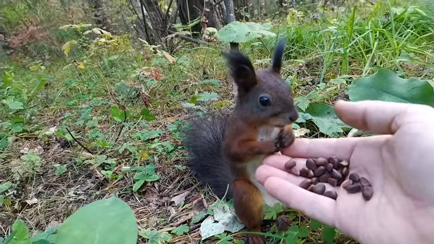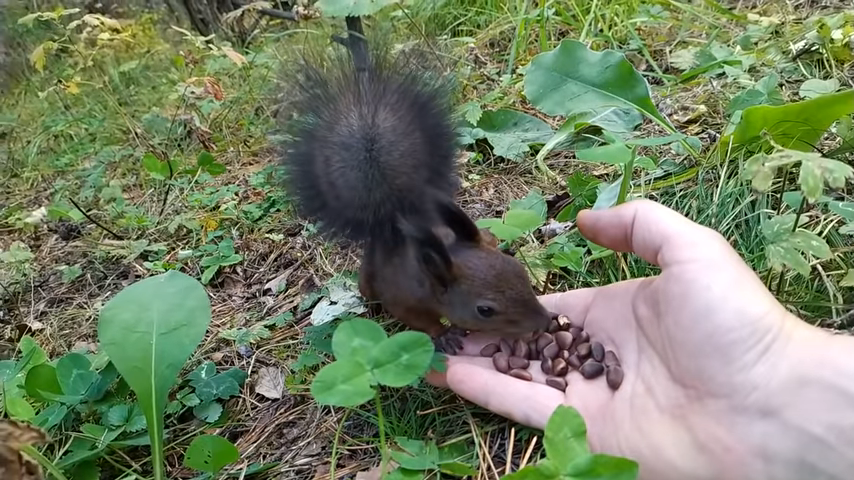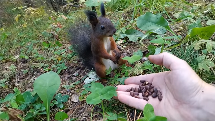 陌生人餵食堅果!小松鼠開心吃一半 突然「顏面當機」:馬麻好像說不能吃耶…