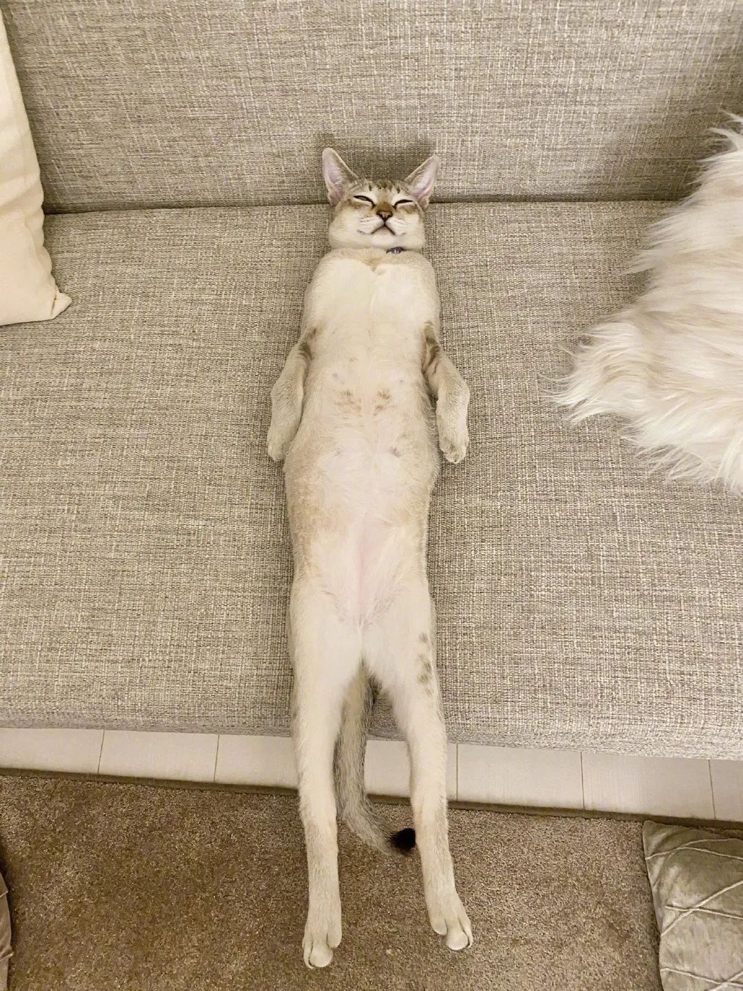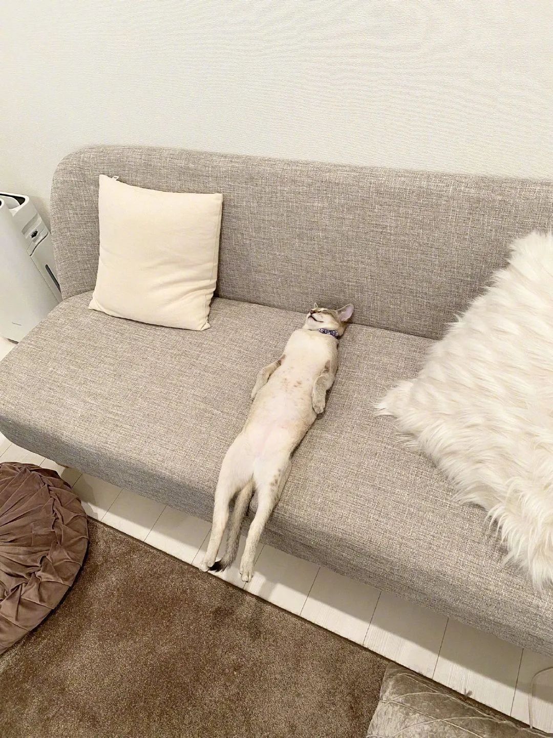 2021年09月25日辛苦工作一天,好不容易下班回家,只想躺在沙發上好好休息。這不僅僅是上班族的日常,連貓咪也一樣。日本模特兒貴島明日香養了一隻可愛的貓咪,這隻貓咪就在沙發上睡成「貓餅」,那大爺一樣的睡姿超可愛~