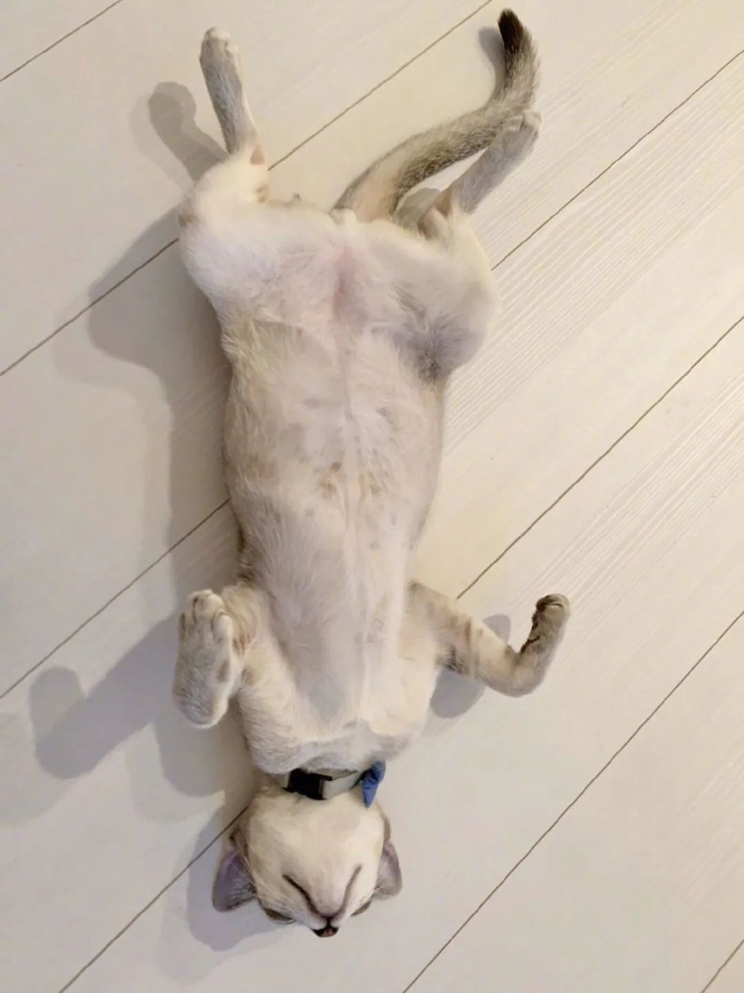 ▼貴島明日香經常在推特上分享愛貓的日常照。她抓拍貓咪累癱後愜意躺著的模樣,po到推特上跟大家分享。網友們都被貓咪獨特的睡姿迷倒,覺得牠超可愛。