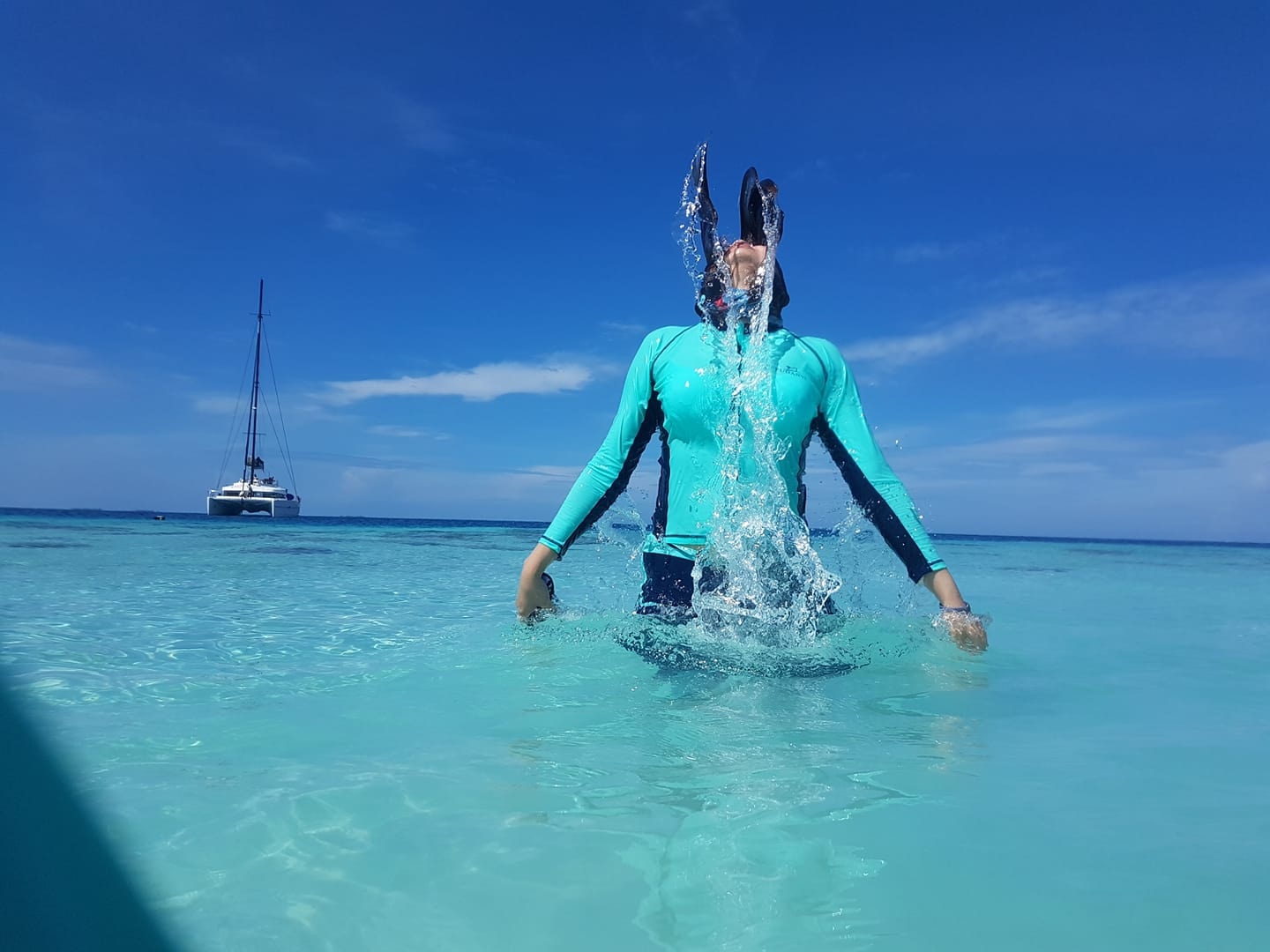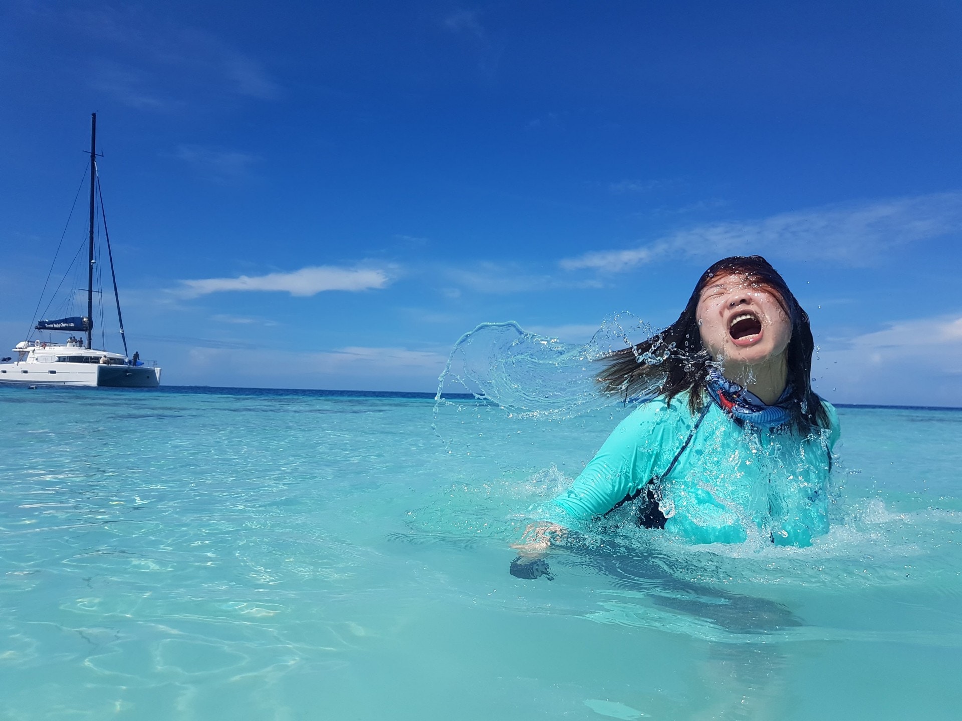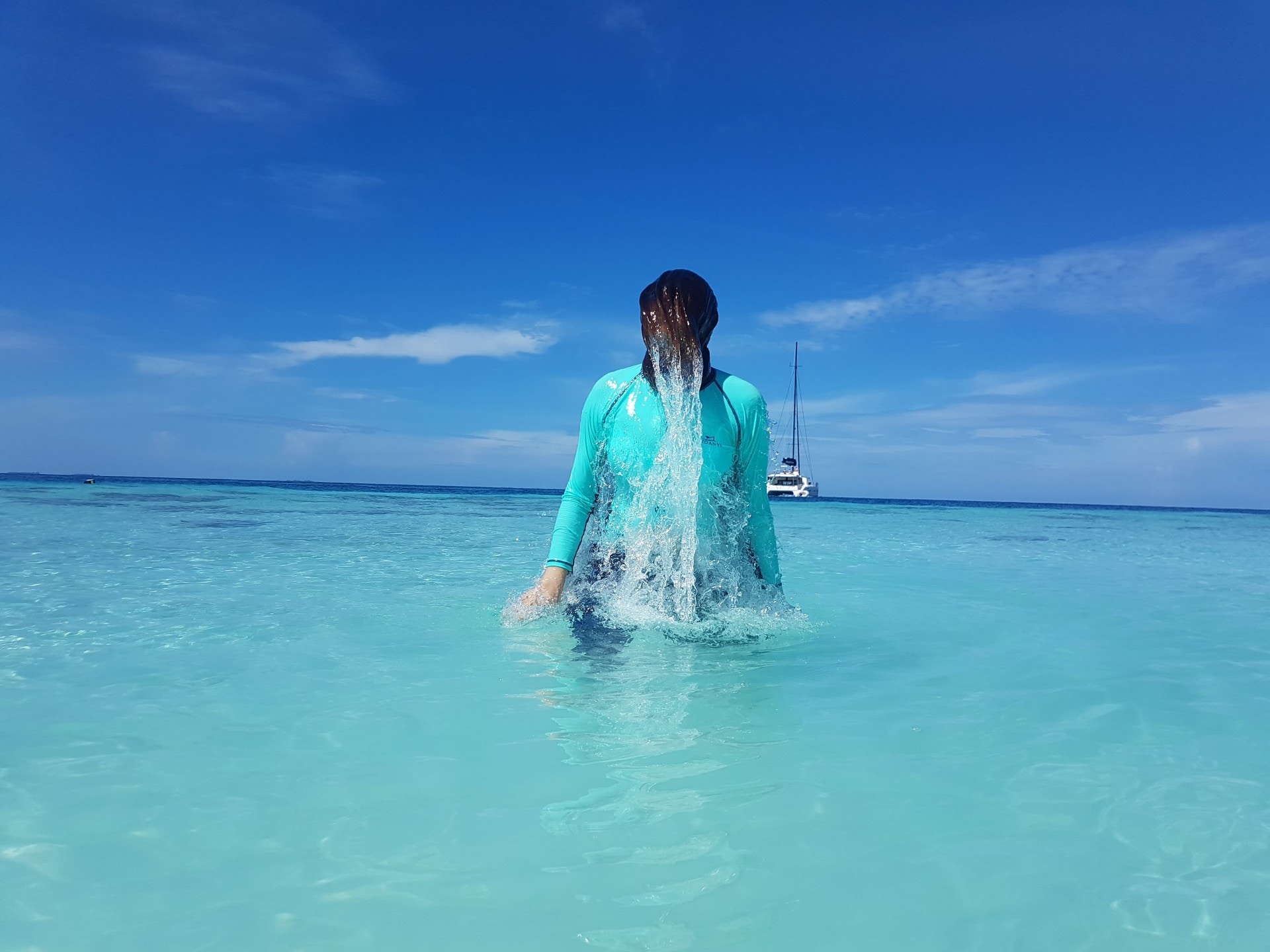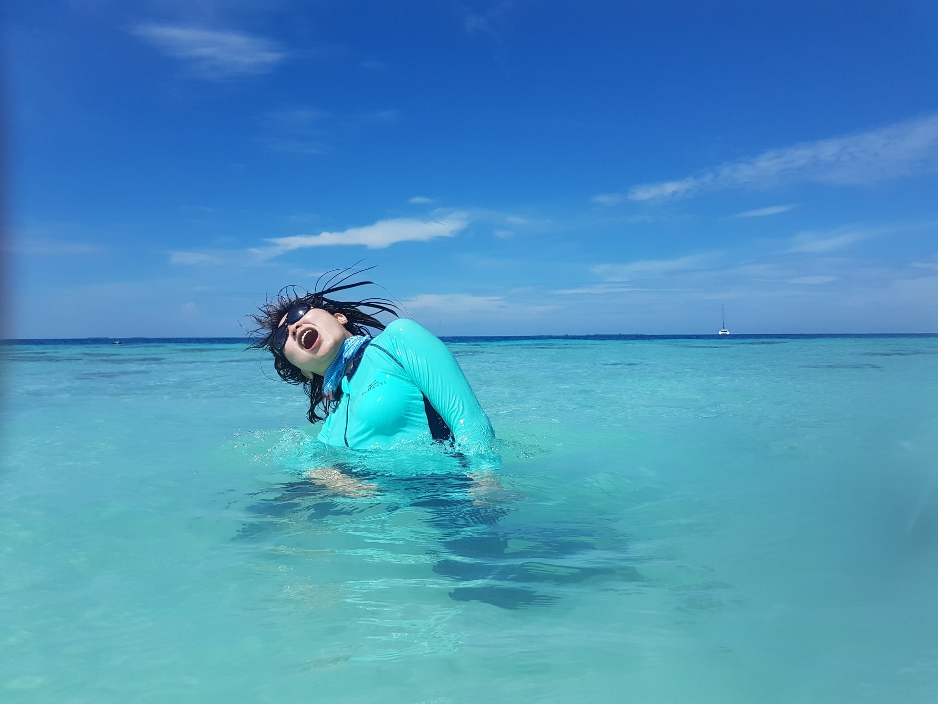 ▼一些網友好奇,為什麼她沒有穿比基尼、化妝,想拍好看的沙灘照,這些是必備的。女網友解釋說,馬爾地夫是回教國家,只有特定的地方才能穿比基尼。她為了防曬特別穿了防曬衣,浮潛時也沒有化妝,想保護海洋。