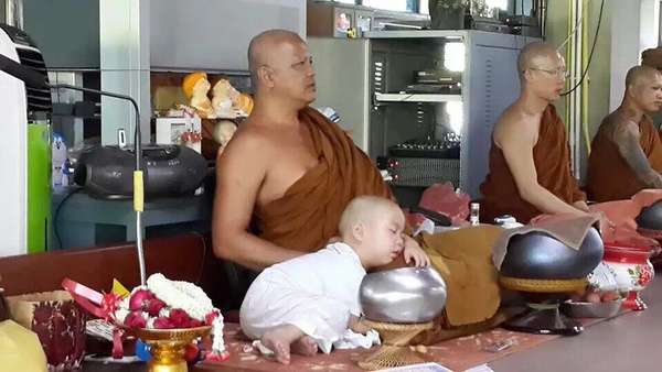 2021年09月25日還記得他嗎?當時只有2歲半的龍坤(Nongkorn)被媽媽送去當小沙彌,暖武里府寺廟Wat PaManeekan的師父也非常喜愛他,對他很好。有時候龍坤敵不過睡魔,就會忍不住在課堂上打瞌睡,最後還乾脆直接睡下去,萌翻了全世界。