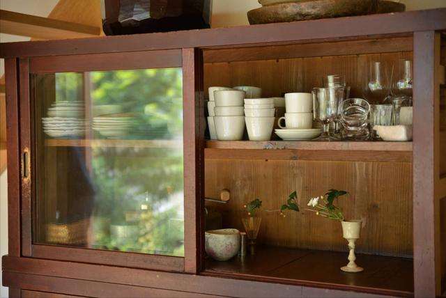 ▼雨宮夫婦都是美食美酒美器愛好者,所以廚房也設計得很巧妙。灶檯面板是輪島的漆器師赤木明登先生送的,碗櫃收集著各地職人的手作器物,搭配每一種料理很有感覺。