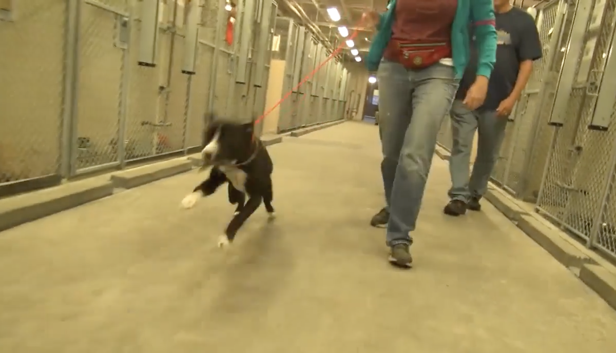 ▼不久前,終於有一個家庭注意到了這隻可愛的狗狗,並決定將牠帶回家。Benny意識到自己能夠走出籠子後,立刻開心地跳上跳下,牠已經迫不及待想要呼吸外面的新鮮空氣了。