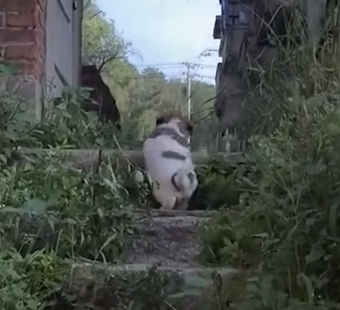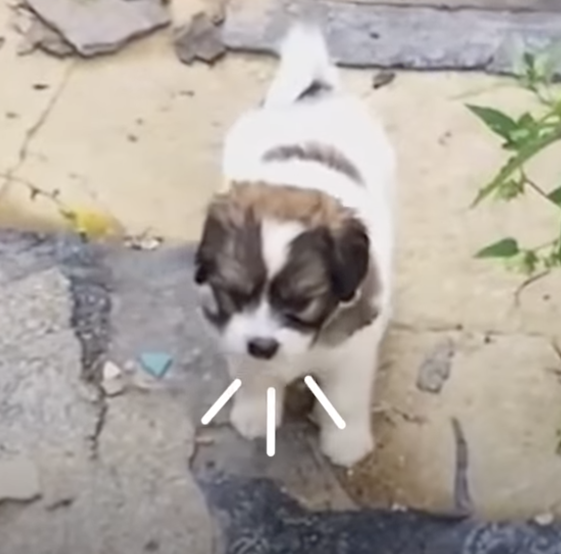 ▼志工趕到現場時,看到了一隻剛剛出生不久的小奶狗。牠體型嬌小,但很有活力,看到志工靠近也不害怕,還轉身引導志工向前走。小奶狗穿過草叢、樣子笨拙又可愛地爬上台階,很快就來到一間空房屋前。牠停下腳步發出幾聲奶萌的叫聲,然後向門口跑去。