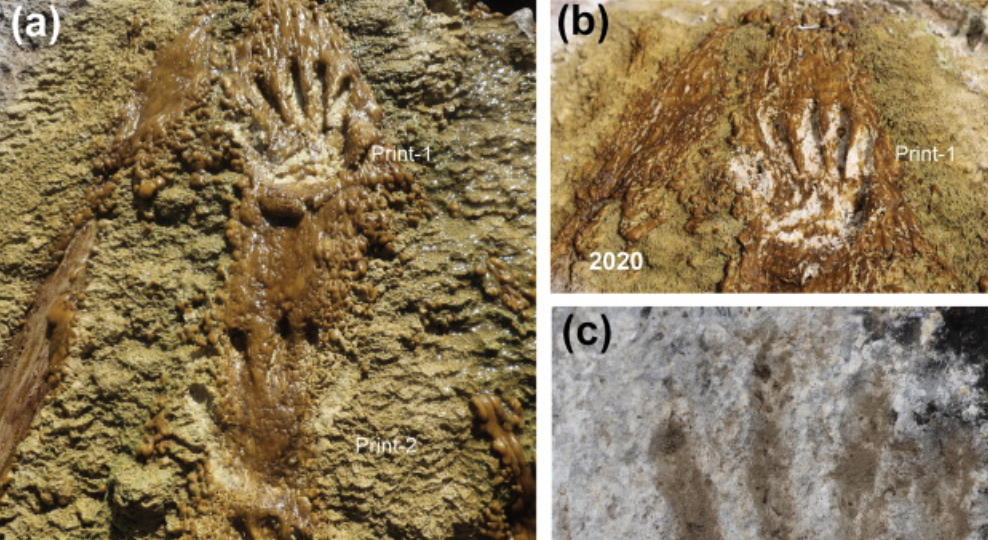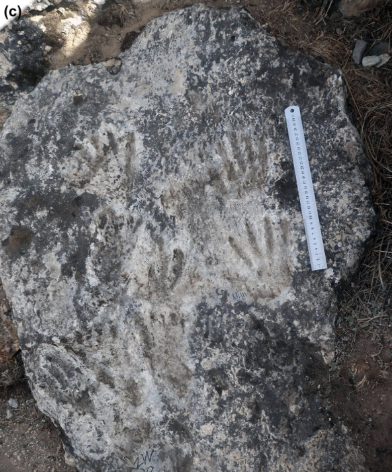 日前一個國際合作研究組在青藏高原雀桑(Quesang)一處溫泉的石灰華裡,發現了一些史前時期留下的兒童掌印和腳印。石灰華是淡水受熱後沈澱凝結的礦物質,檢測顯示,這裡的石灰石可以追溯到公元前16.9萬年到公元前22.6萬年。研究人員認為,這些手印、腳印不像是無意間留下的~