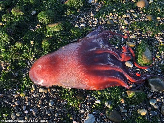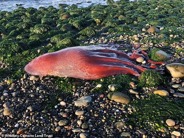 ▼發現這隻七腕章魚的Ron Newberry表示,最初看到這個海洋生物時,他不確定這是章魚,因為附近的海灘上經常有大型水母。他對這隻奇怪的生物很好奇,但不想碰牠。