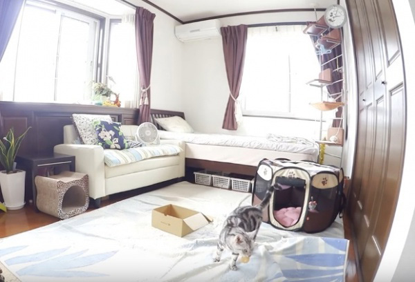 ▼這位鏟屎官養了一隻叫Ame的貓咪。那天鏟屎官準備出門,她打開監視器查看Ame的動向。