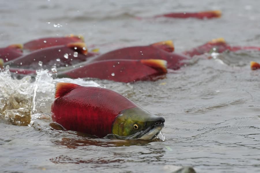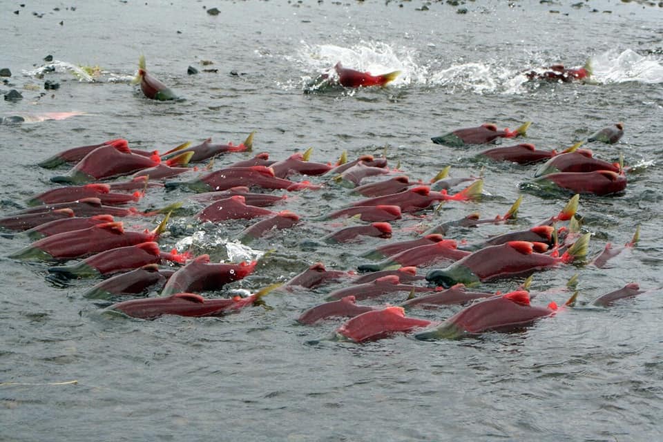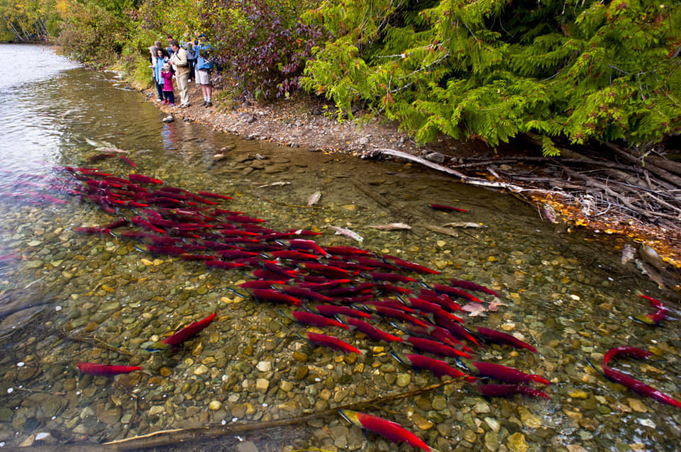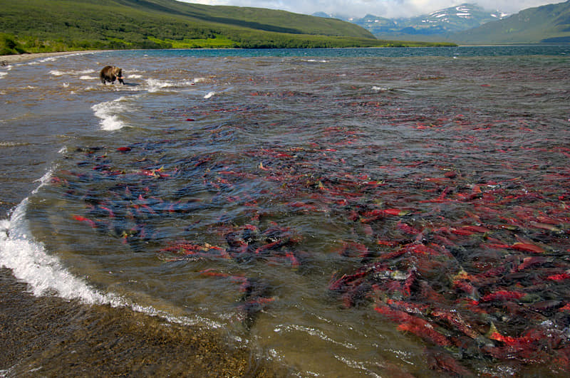 鮭魚洄游是非常壯觀的生態現象,這是一場沒有歸途的旅行,牠們逆流而上,不但創造全新的生命,還餵飽了沿途的數百萬動物,這可能是地球上最壯烈、最神奇的生命輪迴了。