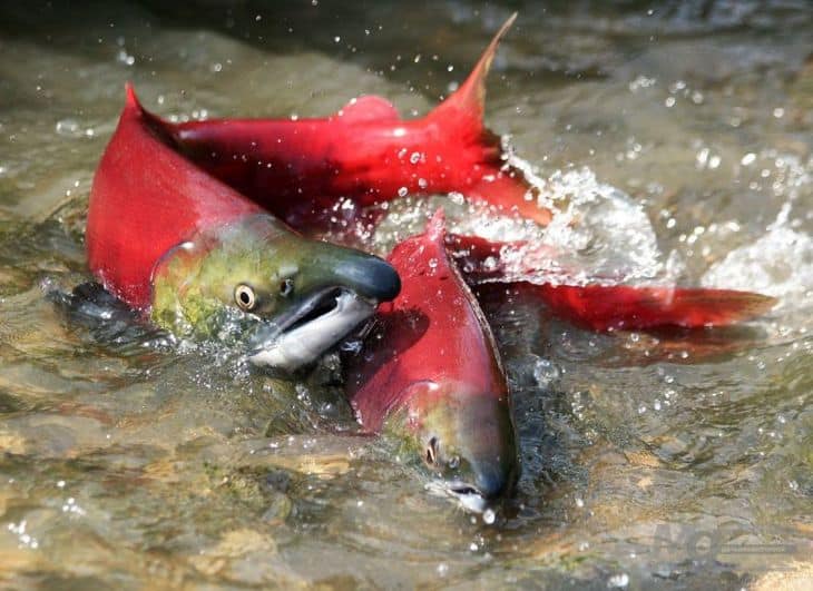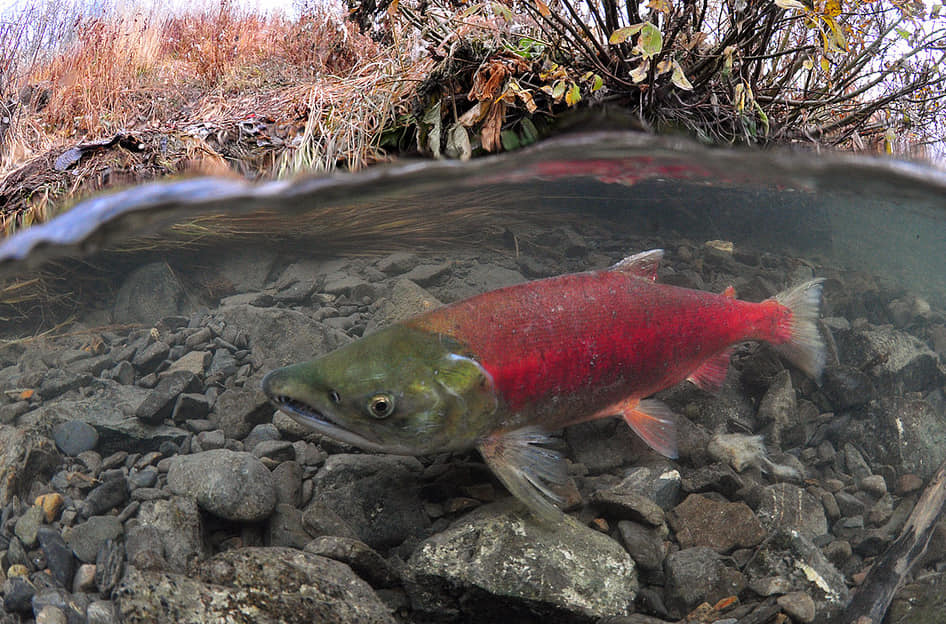 是辣椒在游泳? 河面「整面紅色」真相卻超感人:這是壯觀的生命循環