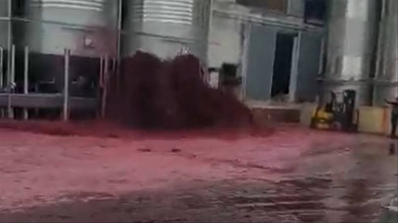 一片紅海!酒莊酒罐突裂開「5萬升紅酒流出」 噴泉式猛噴網羨:想去接