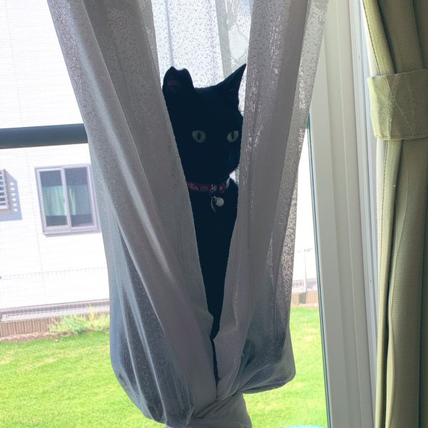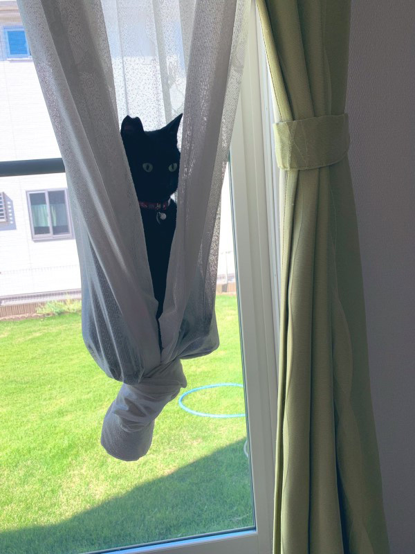 驚見黑貓端坐窗簾中「半空漂浮」 網友笑翻:在練空中瑜伽嗎?