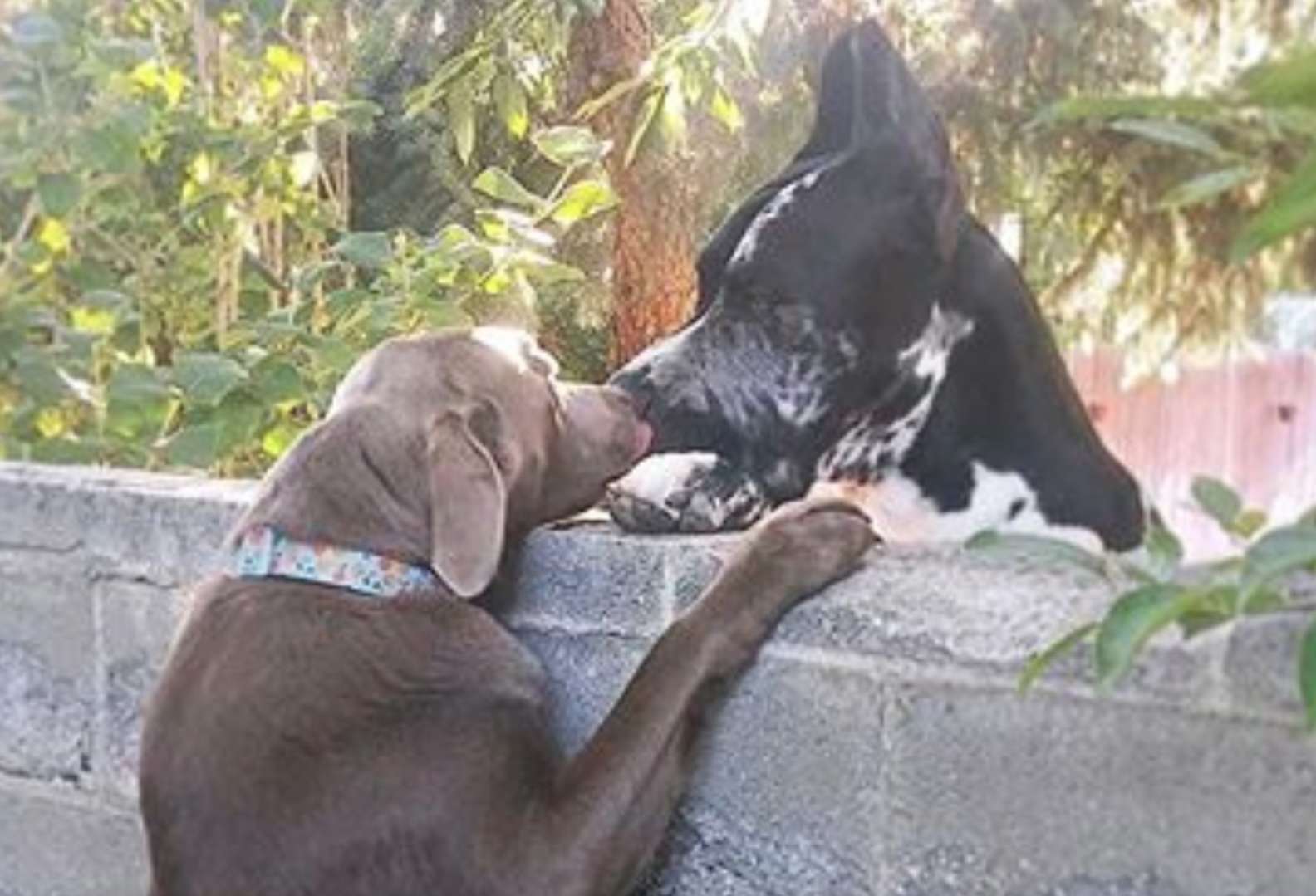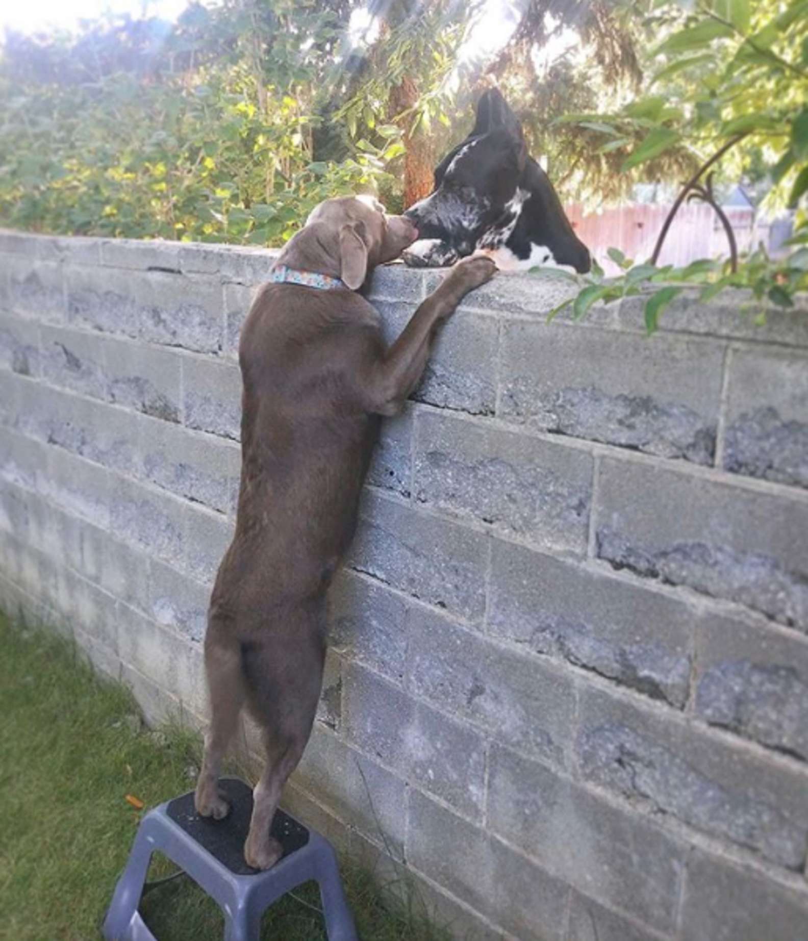 拉拉愛上鄰居大丹犬! 被圍牆隔離…主人巧思「幫牠長高」網友萌翻❤️