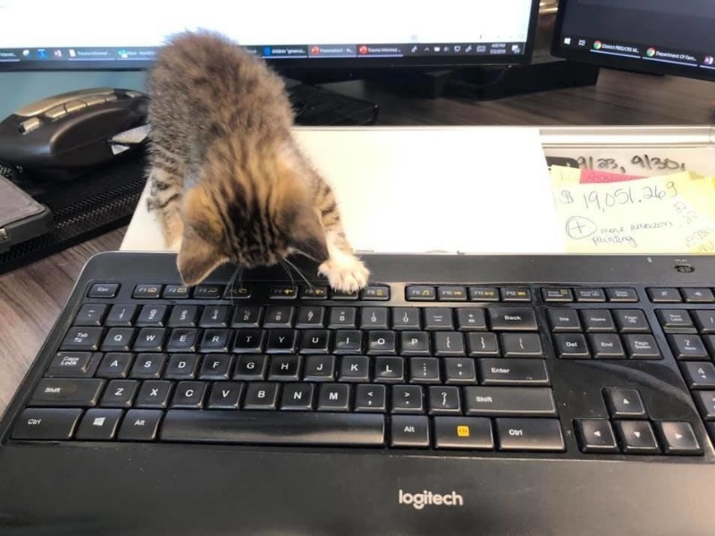 ▼同事們工作時,Moxie很喜歡跳到辦公桌上,擋在電腦螢幕前或鍵盤上,干擾大家做事。局長說:「Moxie最愛的就是在辦公室四處探索,牠會滾遍我整張桌子,還是一個小跟屁蟲,我走到哪就跟到哪!」