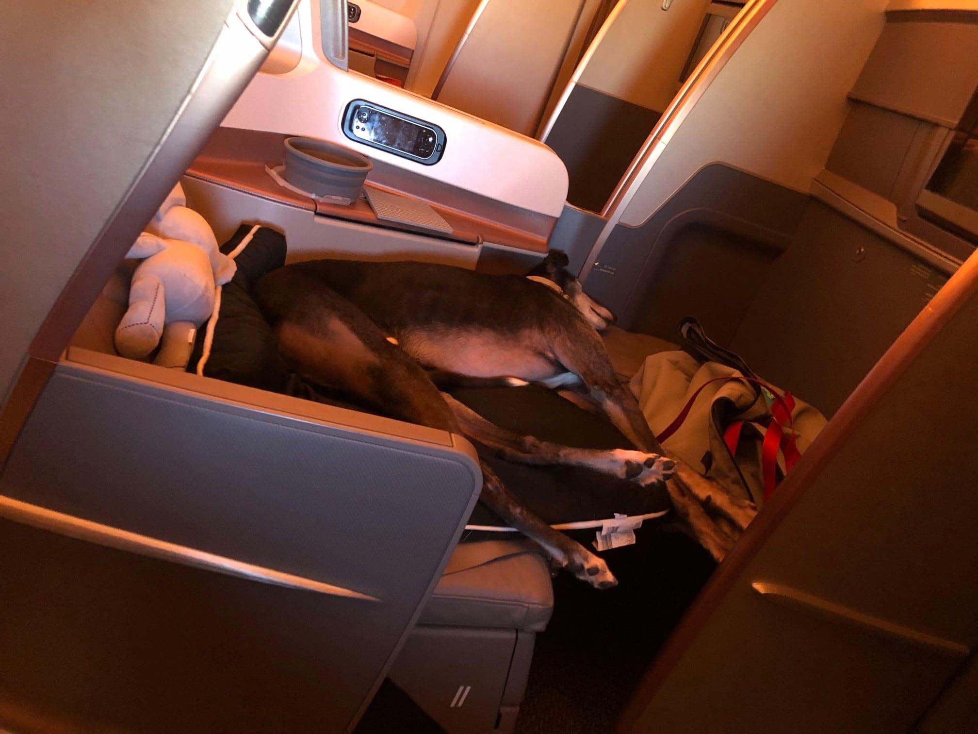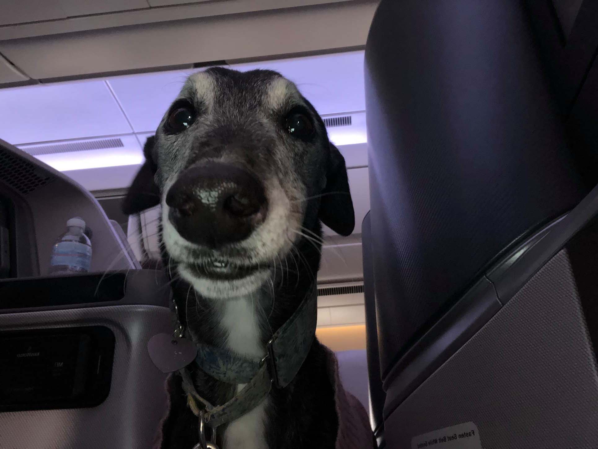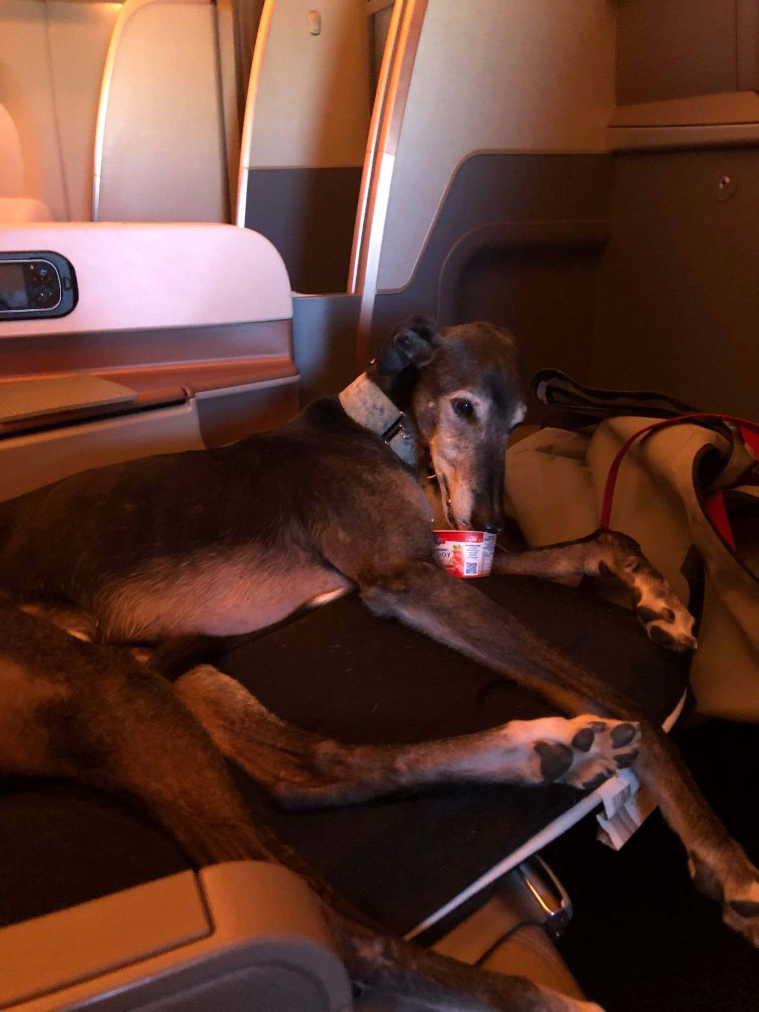 好狗命!退役賽犬搭機「被升等到商務艙」 空姐高空為牠開辦生日趴♡