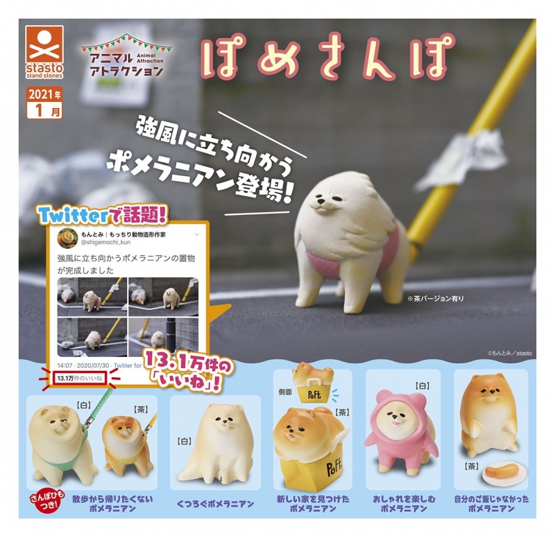 ▼日本動物造形作家@shigemochi_kun創作了這一系列「趣味博美狗狗系列扭蛋」,並準備跟扭蛋公司stasto合作進行商品化。這一系列作品中話題度最高的就是「被強風吹的狗狗」啦~