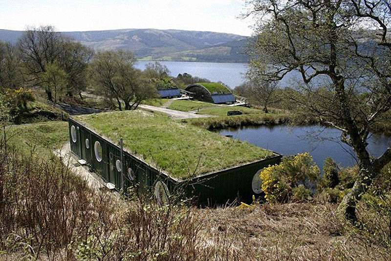 ▼湖邊的貨櫃屋,屋頂還有草坪呢。