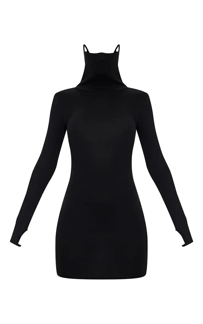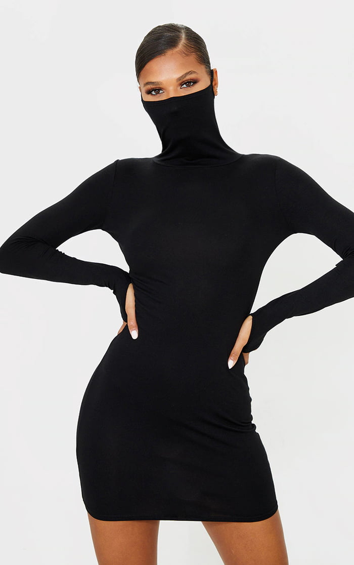 2021年10月09日疫情期間人們都戴起口罩防疫,如果沒有口罩的話,用圍巾、衣物遮掩口鼻,也能起到保護作用。日前英國流行網站「PrettyLittleThing」推出了一款超有創意的黑色連身裙。這件連身裙看起來沒什麼特別,但能很好得凸顯身材,高領還能當口罩來用~
