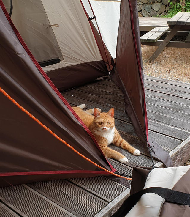 喵皇駕到!搭完帳篷竟見「自來橘貓」躺好 牠一臉淡定:借住一下有意見?