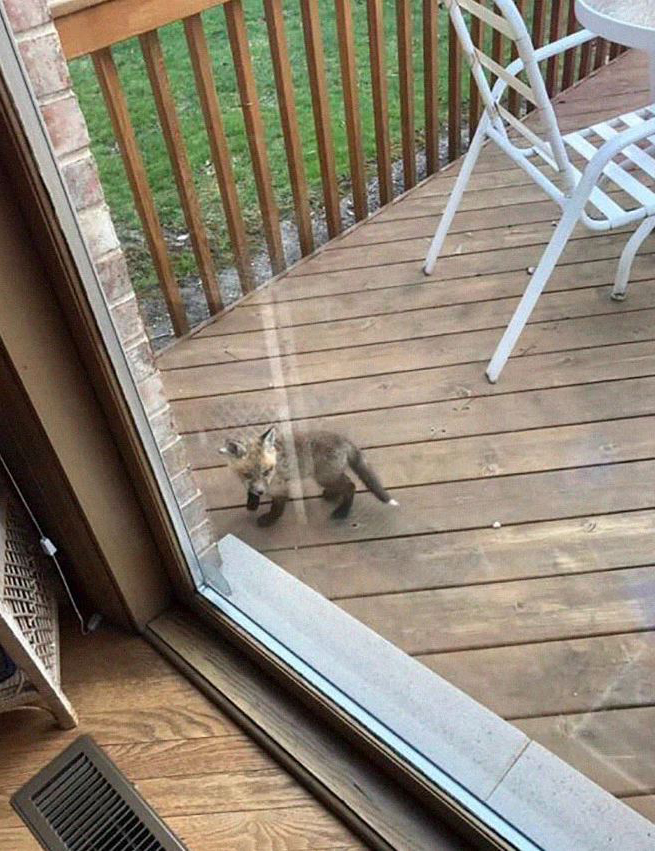 2021年10月20日有特別的客人來拜訪~日前美國伊利諾州的一位網友在奶奶家拍到了一組超萌的照片。只見2隻狐狸寶寶跑來玩,牠們在門廊上跑來跑去,還趴在門窗邊好奇地往屋內看,甚至吐舌頭賣萌,好像在說:「有食物給我們吃嗎?」那可愛的畫面讓人心都要融化了。