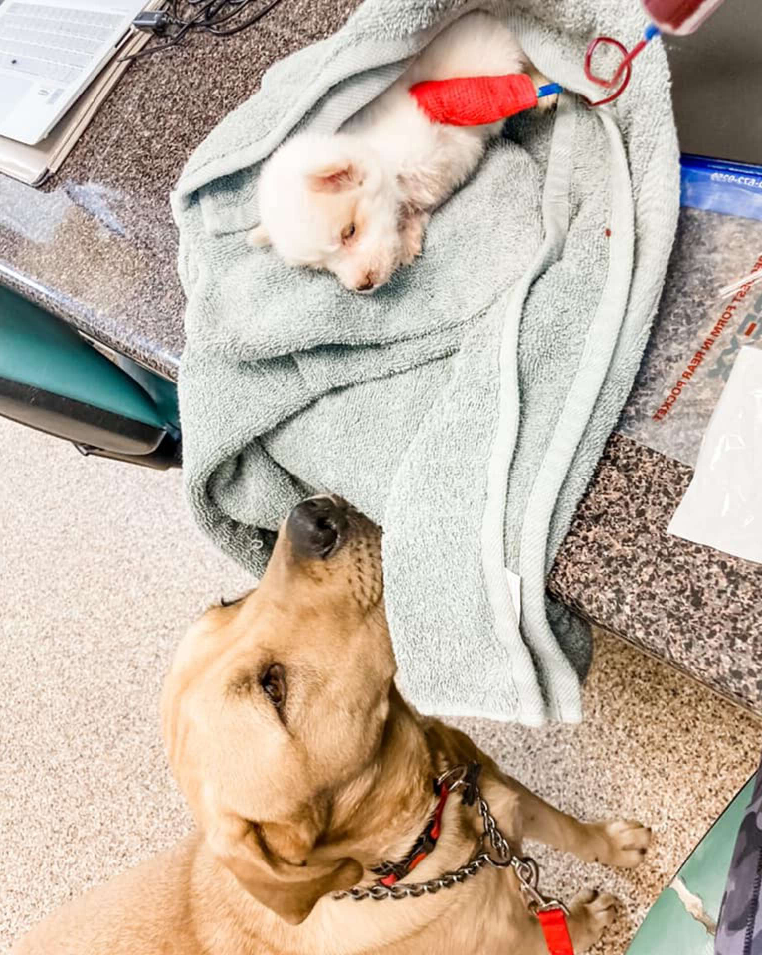 小奶狗動不了要被安樂! 獸醫院大狗「決心救活牠」:放心,我會保護你