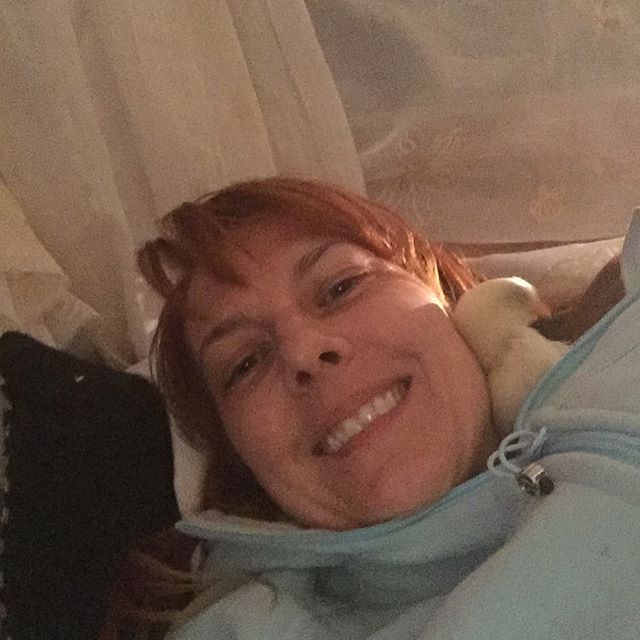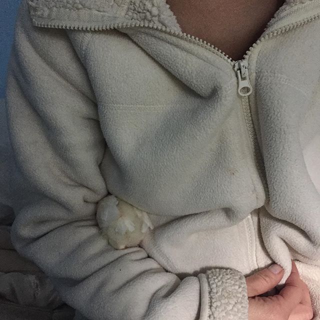 ▼Camille越來越喜歡這隻可愛的小雞,後來乾脆將牠帶回家中途。為了讓小雞溫暖一些,她會穿上保暖的衣物,讓小雞窩在自己懷裡,24小時陪伴著牠。