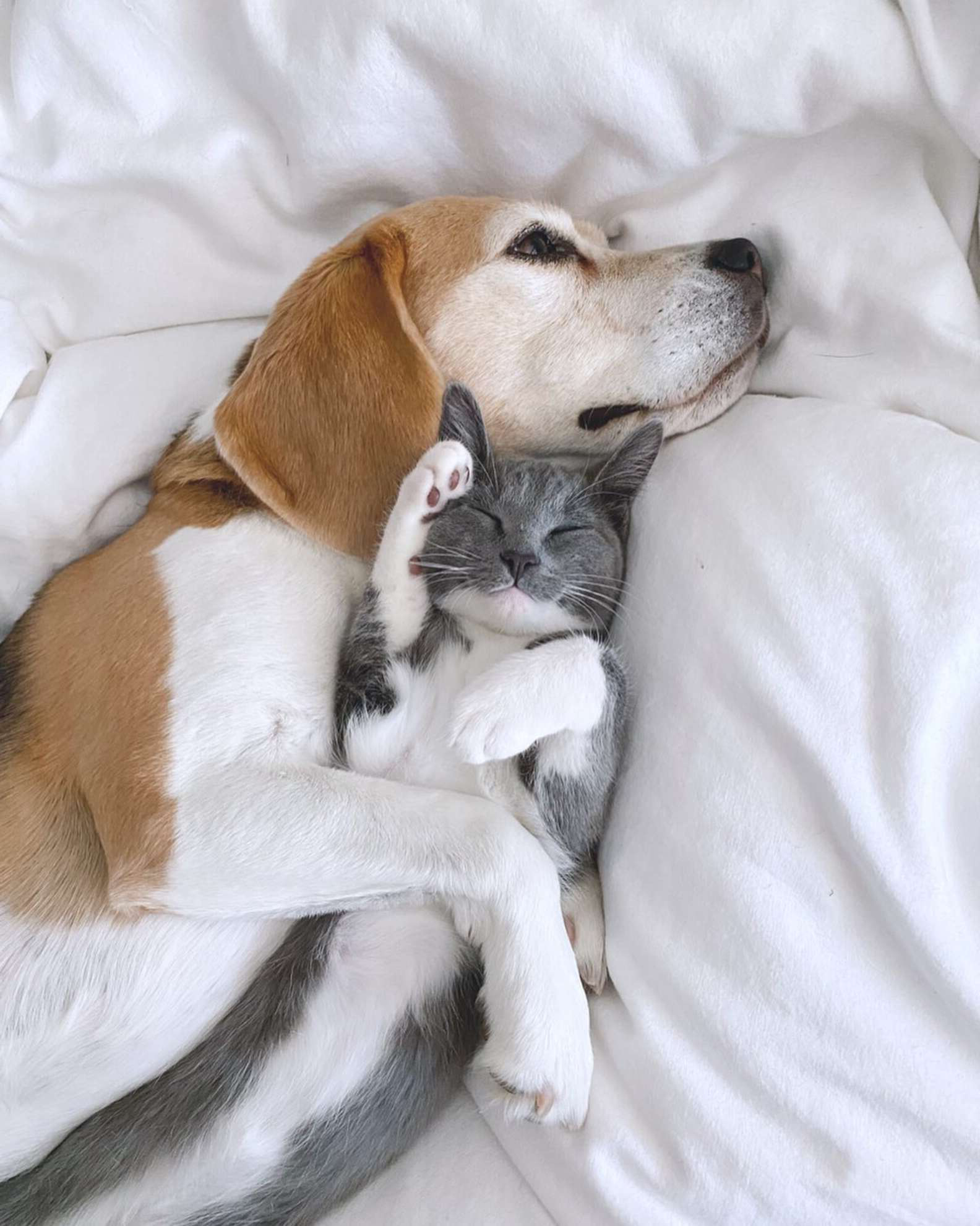 2021年10月25日狗狗和貓咪也能成為好朋友~美國一名攝影師Megan Cottone非常喜歡小動物,經常在網路上分享自家毛孩的可愛日常。她養了一隻小獵犬Chloe,Chloe最好的朋友是一隻兔兔Rue,Rue離開人間後牠非常傷心,於是Megan又收養了一隻貓咪Chlea,希望牠能陪伴Chloe度過最難過的那段時間。