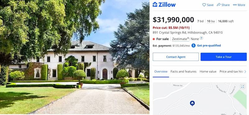 ▼與此同時,馬斯克還決定賣掉自己在加州灣區的豪宅。這座豪宅佔地57500坪、內部空間有450坪,外觀整體呈現優雅的白色。豪宅中有7間臥室、10間浴室,車庫能停11輛車,還有池塘、花園、游泳池、登山步道、大型宴會舞廳、圖書館和附有私人廚師空間的5星級廚房。