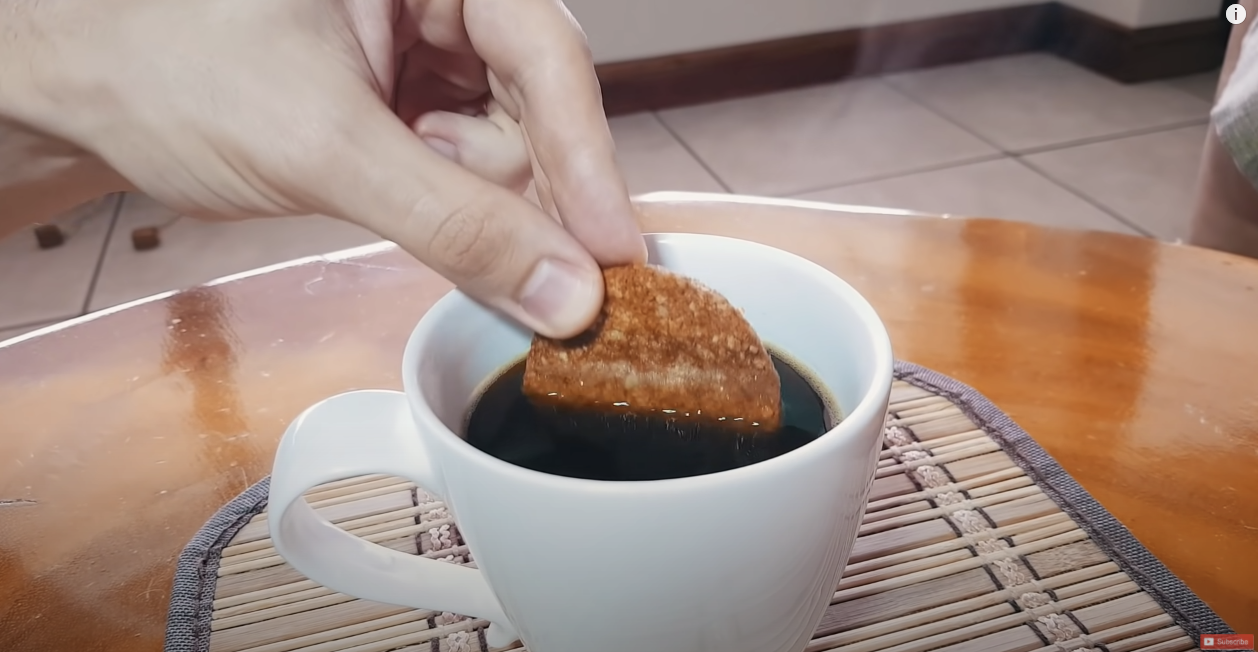 ▼泡餅幹時直接斷在飲料裡: