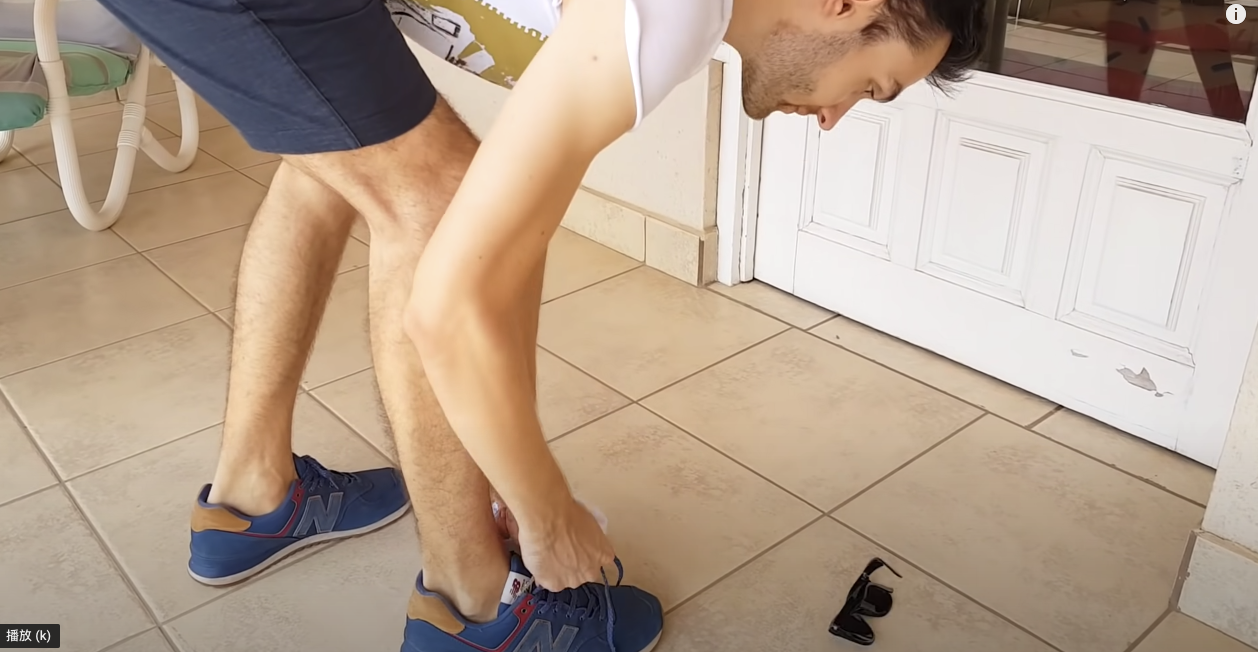 ▼低頭綁鞋帶結果身上的東西掉出來: